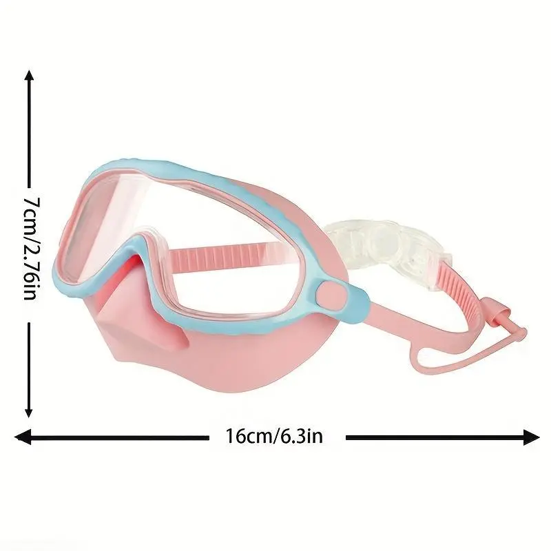 Children's large frame anti fog swimming goggles, adjustable strap and comfortable pad PinkFrame and blue silicone pad, suitable for outdoor swimming, beach, pool safety, swimming goggles, beach safety equipment, fashionable swimwear