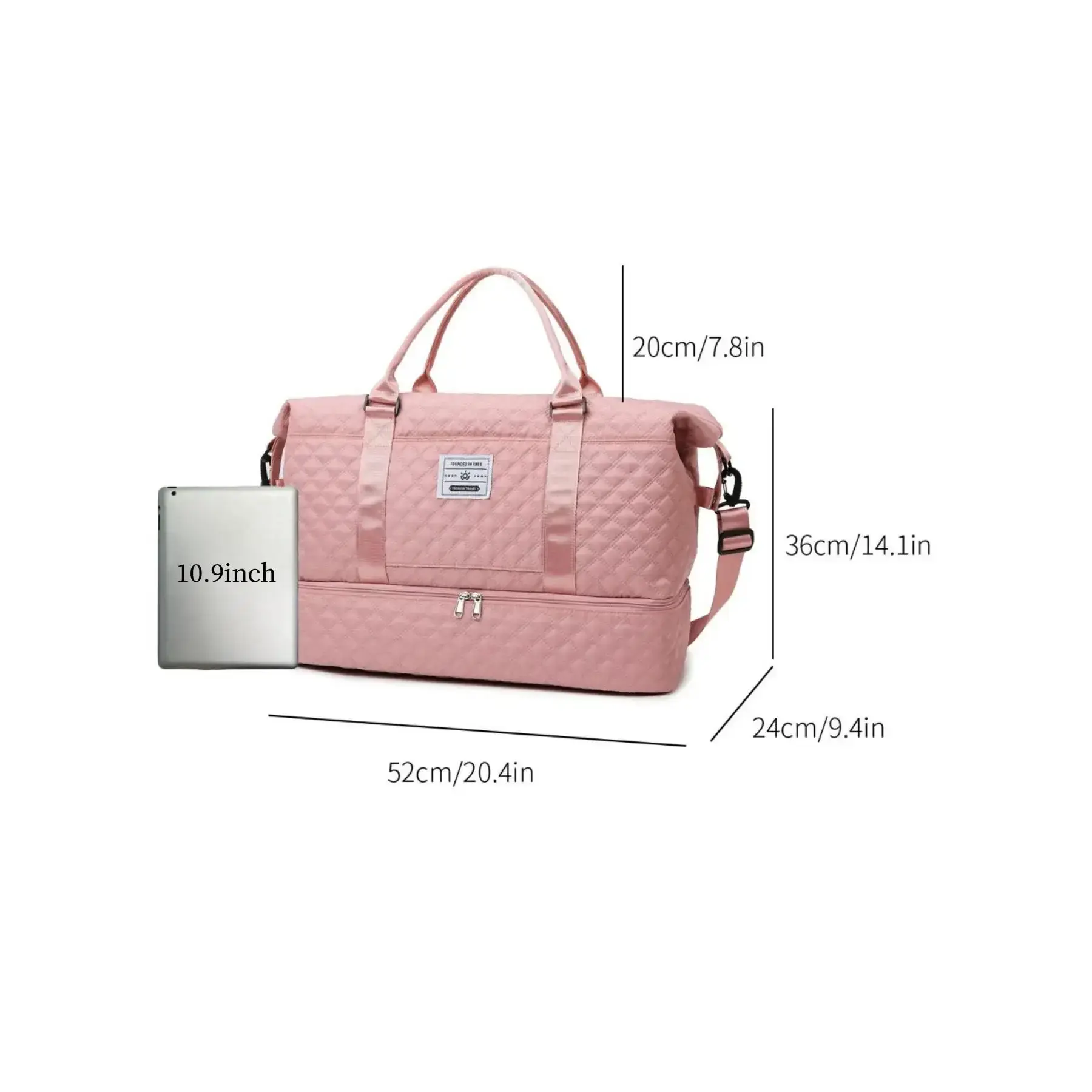 【Large Capacity】: This travel bag offers ample space for all your essentials, ensuring you can pack everything you need for your trip. 【Lightweight Design】: Constructed for easy portability, this bag is lightweight, making it simple to carry during your travels. 【Hydration Separation】: Featuring a dry-wet separation compartment, this bag keeps your wet items separate from your dry essentials. 【Zipper Closure】: Equipped with a secure zipper, this bag ensures your belongings are safely stored and easily accessible. 【Unisex Appeal】: Designed for both men and women, this multi-functional bag fits a variety of travel needs and personal styles.