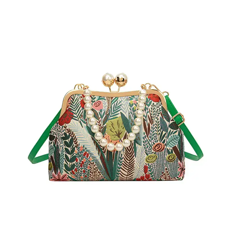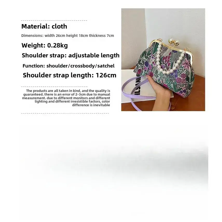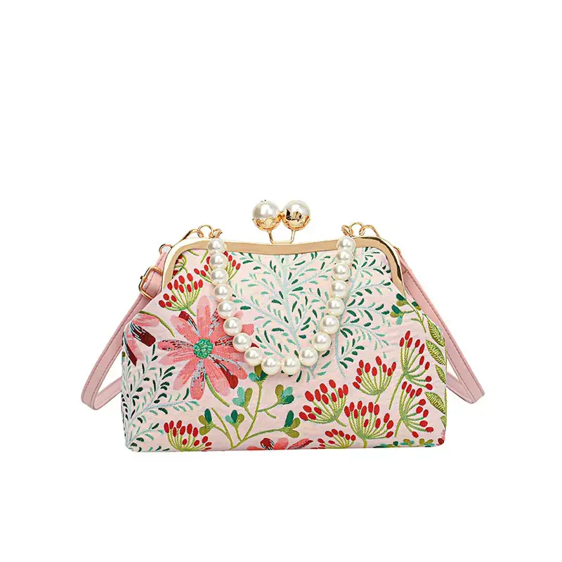 Women's Floral Pattern Faux Pearl Decorated Handbag, Casual Large Capacity Shoulder Bag for Daily Used, Trendy Versatile High-quality Daily Commuting Bag