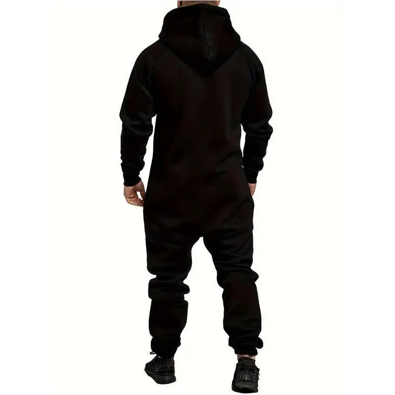 New 2024Fall/Winter Men's Hooded Fleece Onesie for Fashion and Casual Clothing Fabric Knit