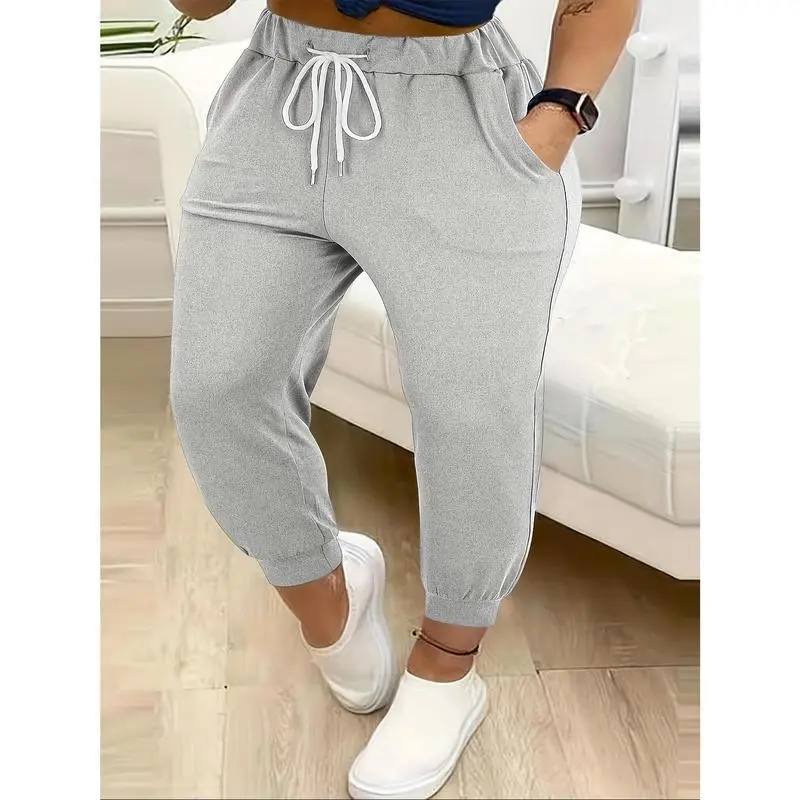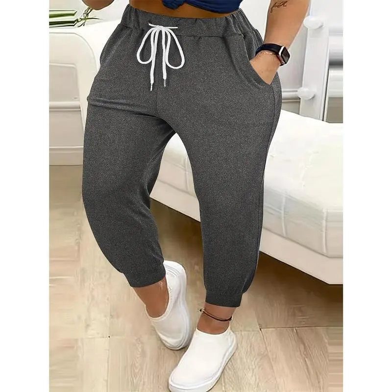 PlusSizeSolidColorPants,CasualDrawstringWaistPantsWithPockets,Women'sPlusSizeClothing