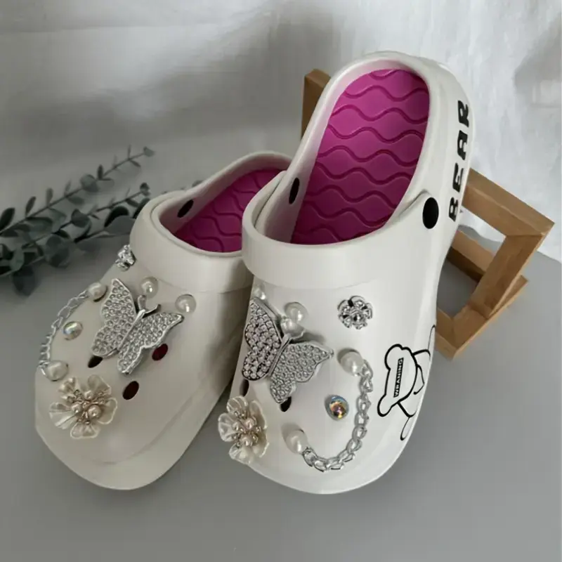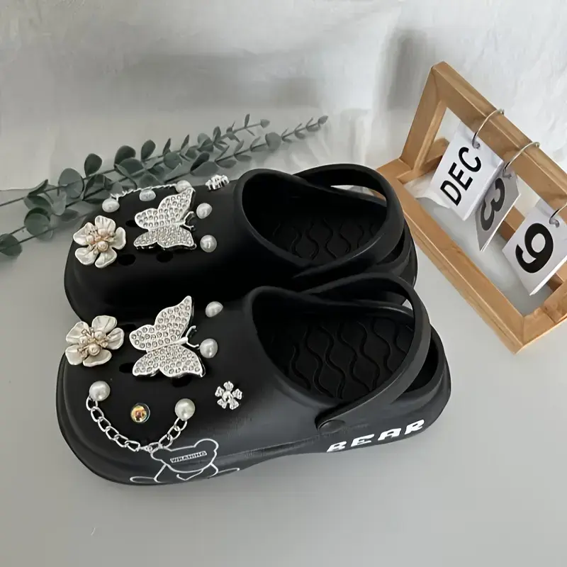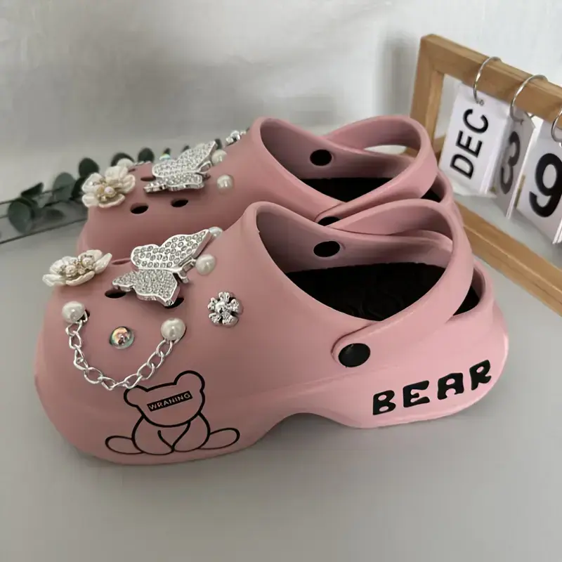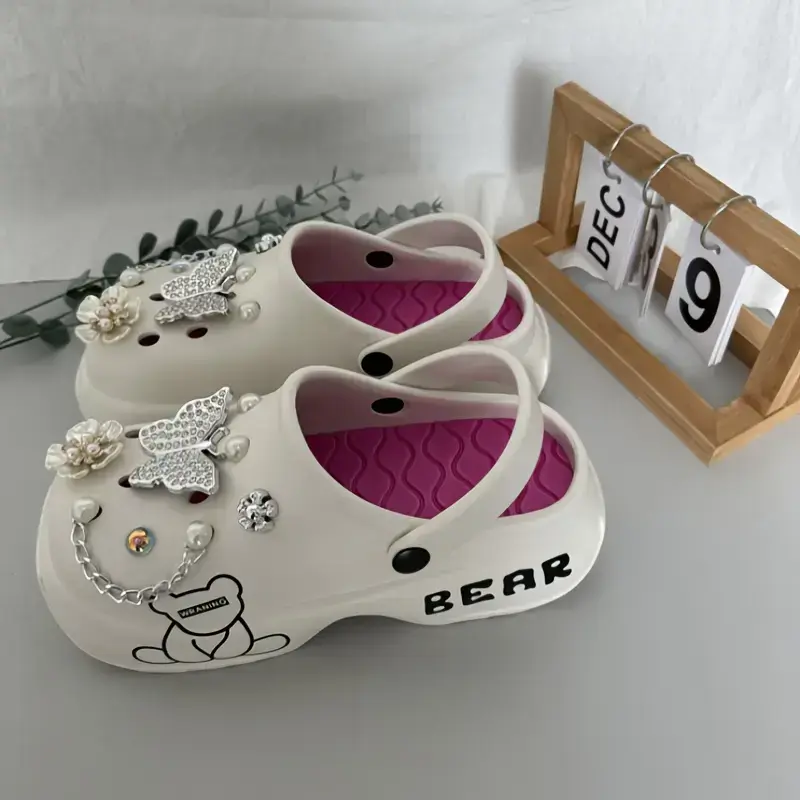 Daily Everyday WearDaily Everyday WearBreathable EVA Platform Heel Clogs - Casual Cartoon Bear Pattern Mules & Clogs For Women With Bow Embellishment, Versatile Indoor/ Footwear cow slides Black Girl Walking Shoes Comfort Slipper Flipflop Pedal Flatform