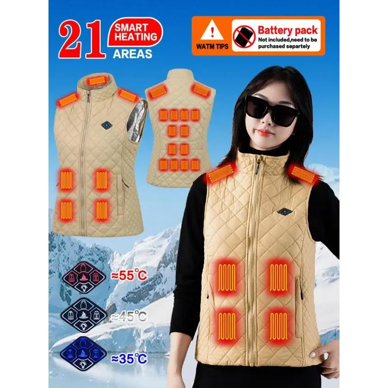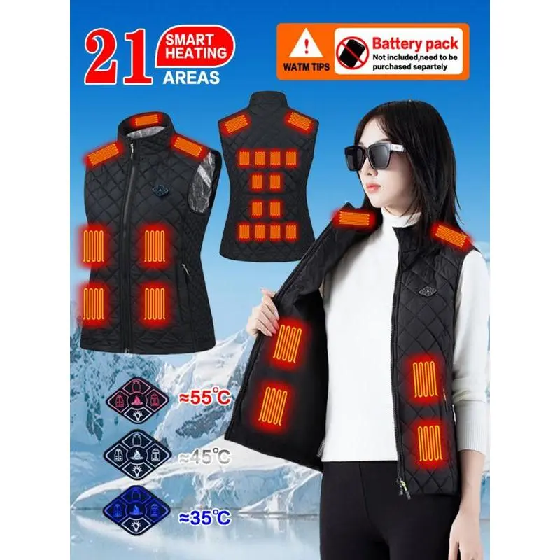 【USB Heating】: Equipped with 21 heating modules, this vest provides adjustable warmth through three temperature settings for effective heat distribution. 【Argyle Pattern】: Features a distinctive argyle pattern that enhances the visual appeal, setting it apart from ordinary warm vests. 【Fitted Cut】: The fitted silhouette ensures a flattering shape while allowing for layering during cooler months, combining style with functionality. 【Moderate Fabric Thickness】: Designed with moderate thickness, this vest strikes a balance between warmth and mobility, suitable for fall and winter wear. 【Functional Lining】: Composed of high-quality filling and lining materials, ensuring effective insulation while maintaining a lightweight feel.
