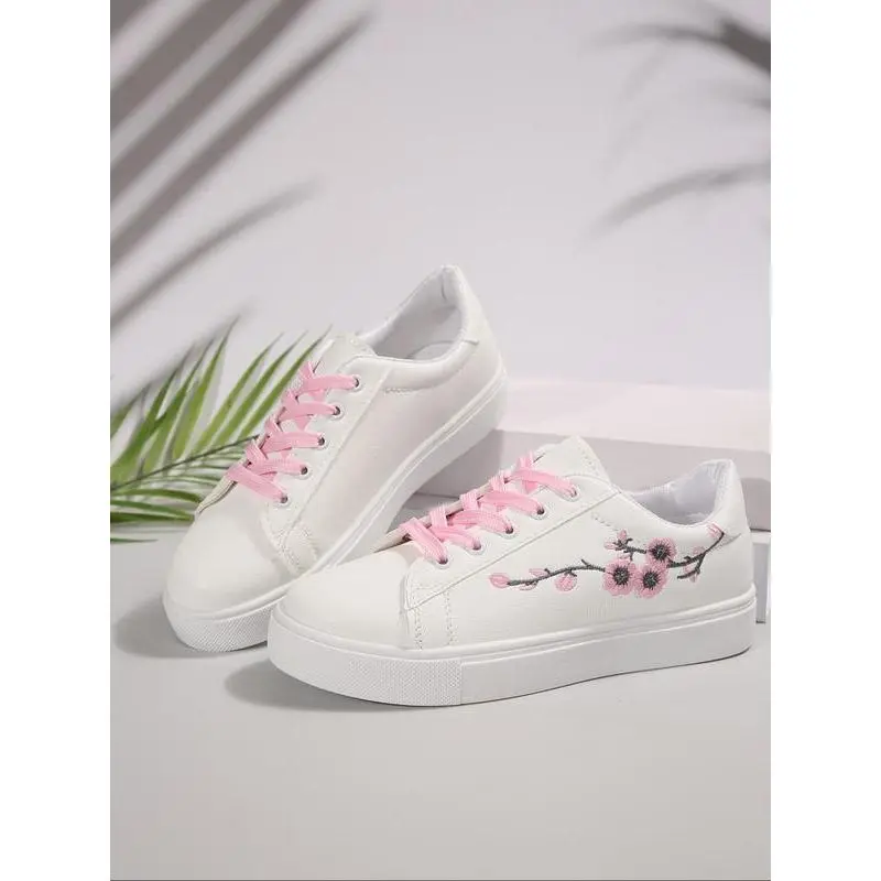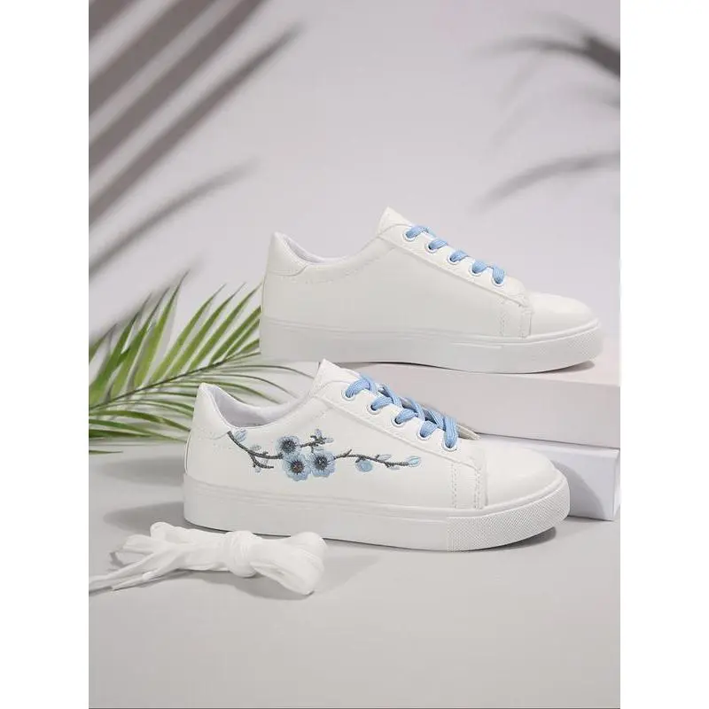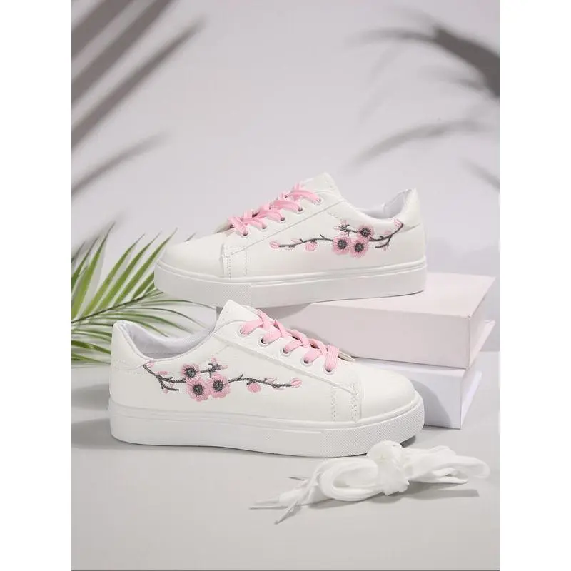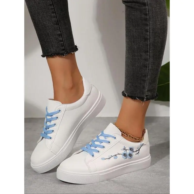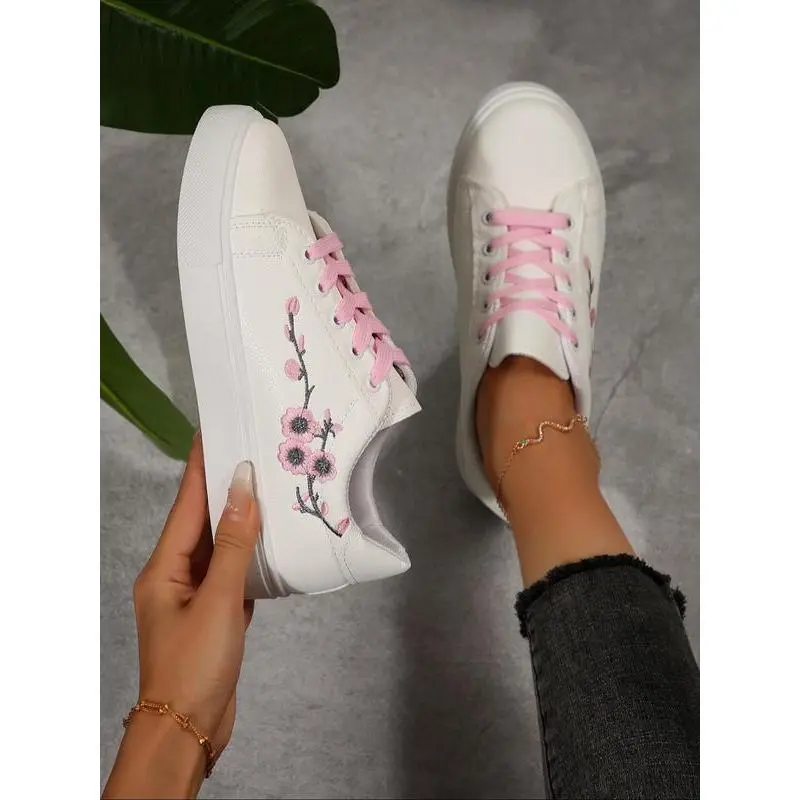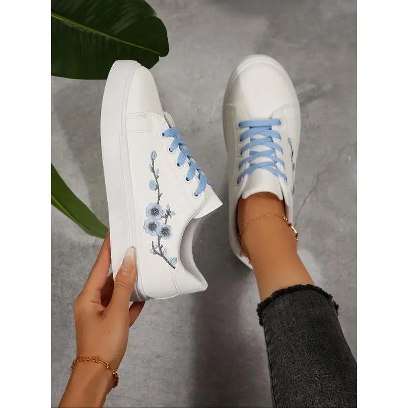 ��Floral Embroidery��: Featuring exquisite floral embroidery, these sneakers add a unique artistic flair that distinguishes them from standard footwear. ��Breathable Material��: Crafted from high-quality PU and textile, these shoes provide excellent breathability, ensuring your feet stay comfortable during all-day wear. ��Lace Up Closure��: The classic lace-up fastening allows for a secure fit, catering to various foot shapes while enhancing stability during activities. ��Lightweight Construction��: Designed with a soft sole, these sneakers offer lightweight wear, making them perfect for daily activities without the burden of heavy footwear. ��Round Toe Shape��: The round toe shape provides ample space for your toes, promoting a natural foot position and ensuring ease of movement.