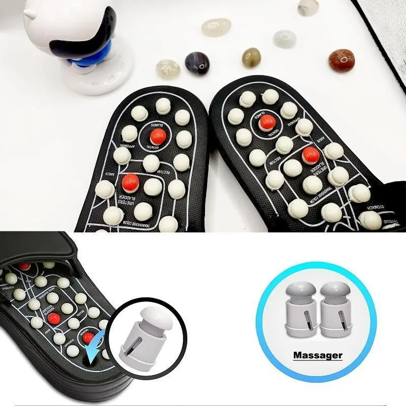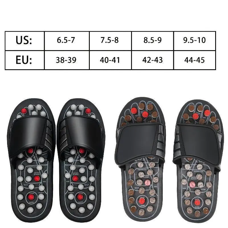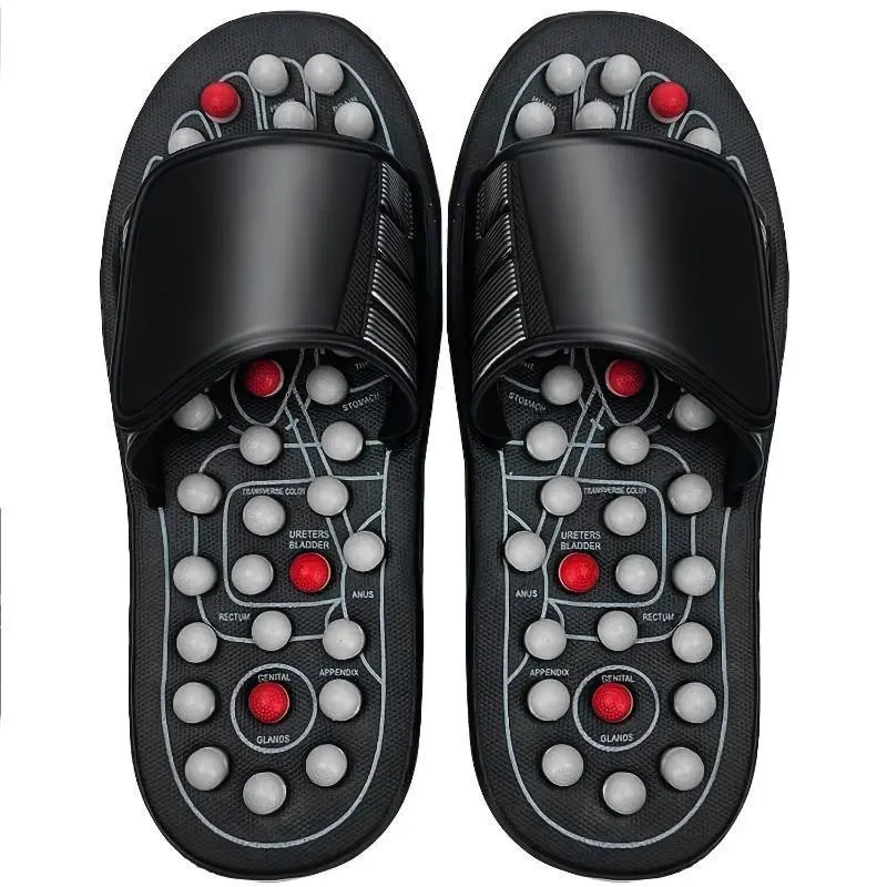 Acupressure Foot Massage Slippers - Reflexology Sandals with Adjustable Strap, & Stress, Black Polyester, Ideal for Improved Sleep & Muscle Soreness Body Care Comfort