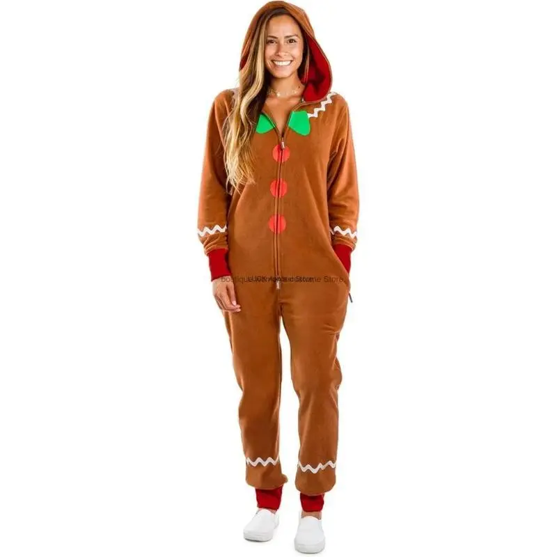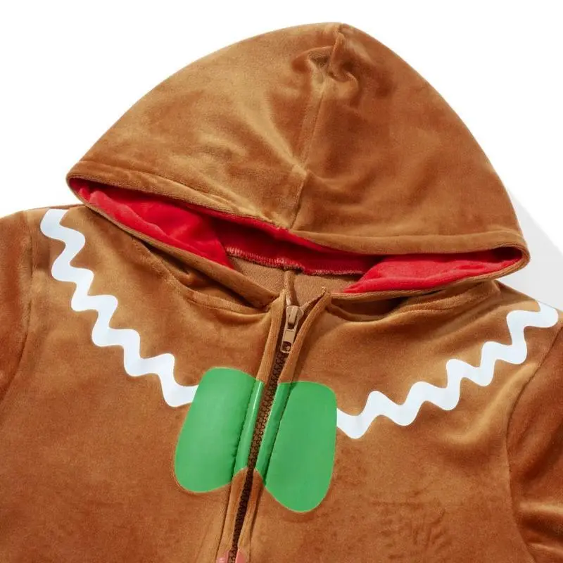 Adult Christmas Costume Gingerbread Long Sleeve Zipper Hooded Jumpsuit for Men Women Party Role-playing Cosplay Features Christmas hooded gingerbread jumpsuit, zippered long sleeve romper with pockets, you're sure to get compliments on this adorable outfit. Ideal props for Halloween, theme parties, role-playing, Christmas, fancy dress parties, Easter, New Year parties, school dramas, etc. Size(cm)/(inch) S Length: 148 / 58.27 ?Bust: 98 / 38.58 ?Waist: 86 / 33.86? M Length: 149.5/ 58.86 ?Bust: 102 / 40.16 ?Waist: 90 / 35.43? L Length: 151 / 59.45 ?Bust: 108 / 42.52 ?Waist: 96 / 37.80? XL Length: 152.5/ 60.04 ?Bust: 114 / 44.88 ?Waist: 100 / 39.37? XXL Length: 154 / 60.63 ?Bust: 120 / 47.24 ?Waist: 106 / 41.73? Specification Material: Polyester? Style: Casual Gender: Women Men Season: All Season? Pattern: Gingerbread Occasions: Parties, Role-playing, Christmas Package Including: 1* Jumpsuit Note: There may be 1-2 cm deviation in different sizes, locations and stretch of fabrics.? Size chart is for reference only; there may be a little difference with what you get.? Color may be lighter or darker due to the different PC display. Promise If the product has any quality problems, please feel free to contact us, we will help you solve the problem as quickly as possible.
