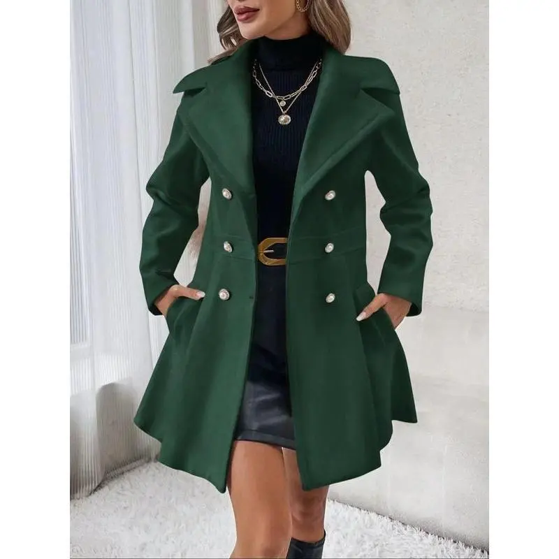 Women's Solid Double Button Pocket Overcoat, Casual Long Sleeve Lapel Neck Outerwear for Fall & Winter, Clothes Daily Wear, Clothing Women, Cute Tops, Jackets Women Elegant White Womenswear Gamis Brown Basic