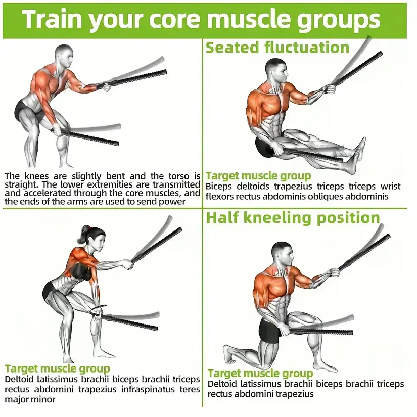 Cordless battle ropes for exercise, cordless jump ropes, portable exercise for home gyms, sports battle ropes for HIIT workouts, low-intensity aerobic training, very suitable for home fitness