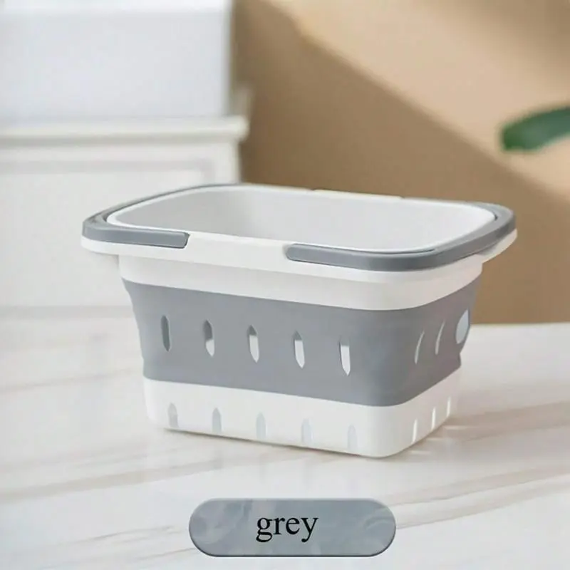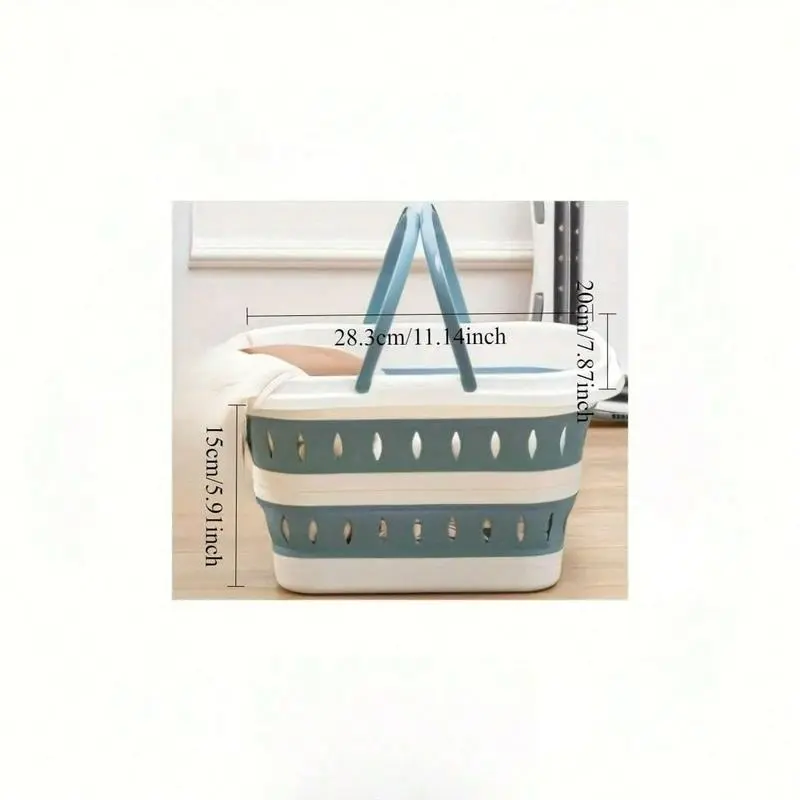 Space saving Foldable Laundry Basket with Handle - Stackable and Foldable Storage Basket, Suitable for Bathroom, Camping, Travel, and Picnic - Durable White and Light Blue Plastic Organizer, Large Capacity Household Dirty Clothes Basket, Ideal KitchenGift