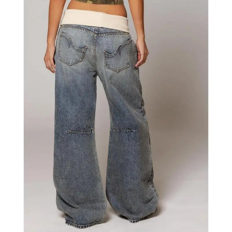 REVICEWomen'sJeansPantsFashionLooseFitCasualLowRiseDenimPantsY2KRetroStreetwearVintageAmericanWideLegTrousers Womenswear Bottom