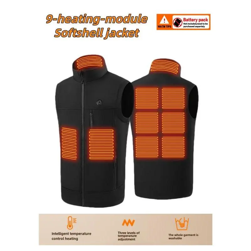 【Adjustable Heat Settings】: Features three adjustable temperature settings, allowing you to find the ideal warmth for varying conditions. 【Nine Heating Modules】: Equipped with nine heating modules, this vest offers extensive coverage for effective warmth during chilly days. 【High Neck Design】: The stand-up collar design provides extra neck warmth, enhancing protection against cold winds and drafts. 【Functional Pockets】: Includes practical pockets for storing essentials securely and conveniently, adding functionality to the look. 【Moderate Fabric Thickness】: Crafted with a moderate thickness, allowing for an ample balance between warmth and ease of movement.