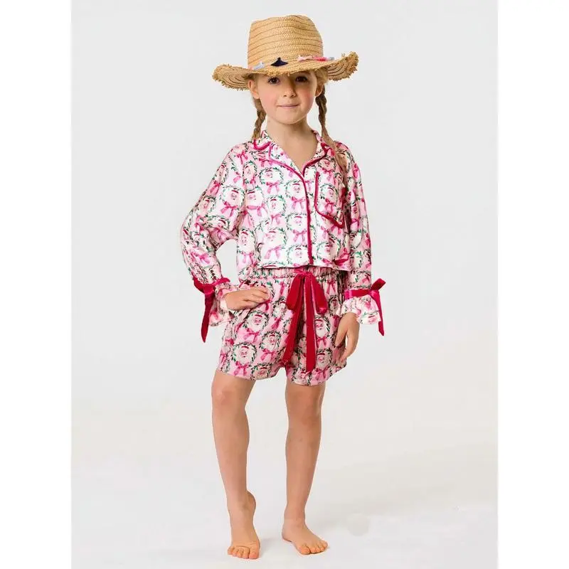 Womens Christmas Pajamas 2 Piece Bow Pajama Set Silk Satin Sleepwear Holiday Matching Pjs Funny Short Sleeve Button Nightwear Set Perfect for Family Photos & Holiday Celebrations