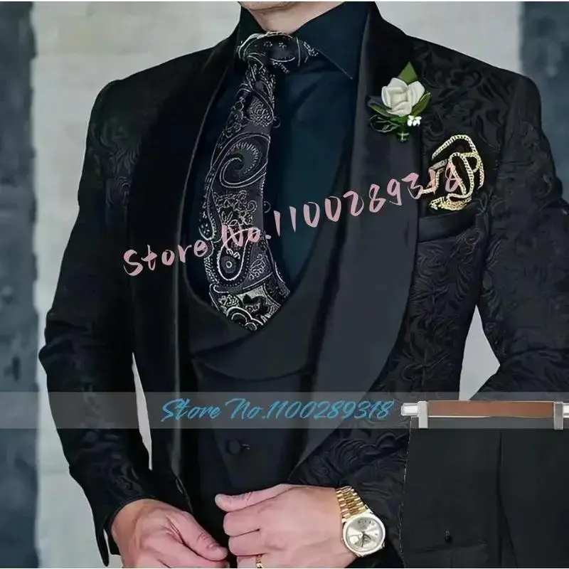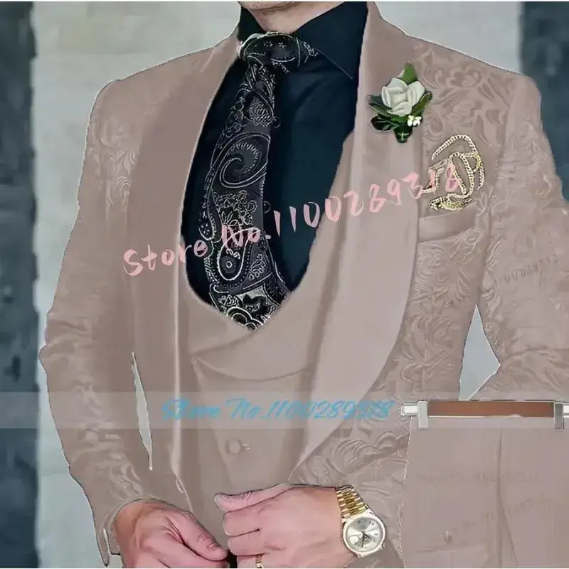 JacquardMen's3-pieceSuitSetFormalPartyDressGroomTuxedoHighQualityElegantMenTernoMasculinoCostumeHommeMariage Menswear Sleeve