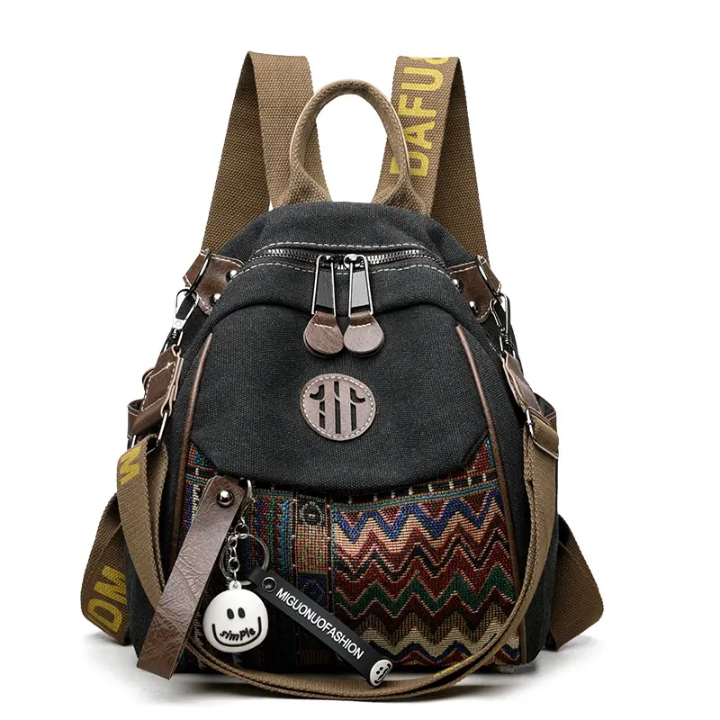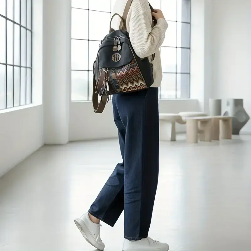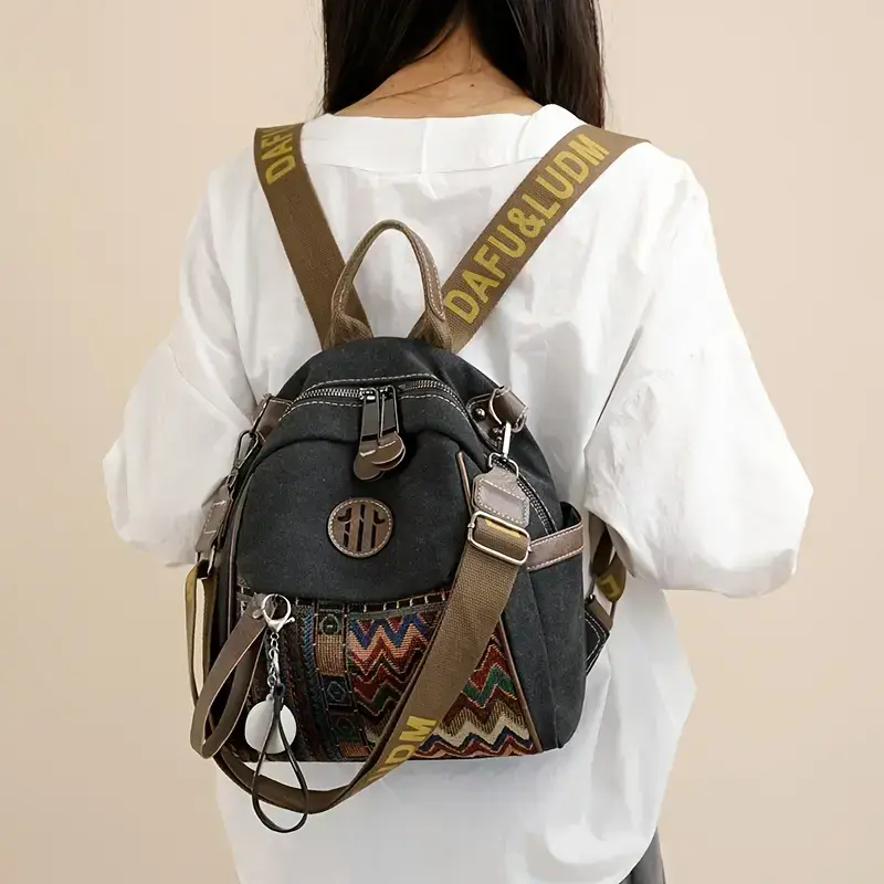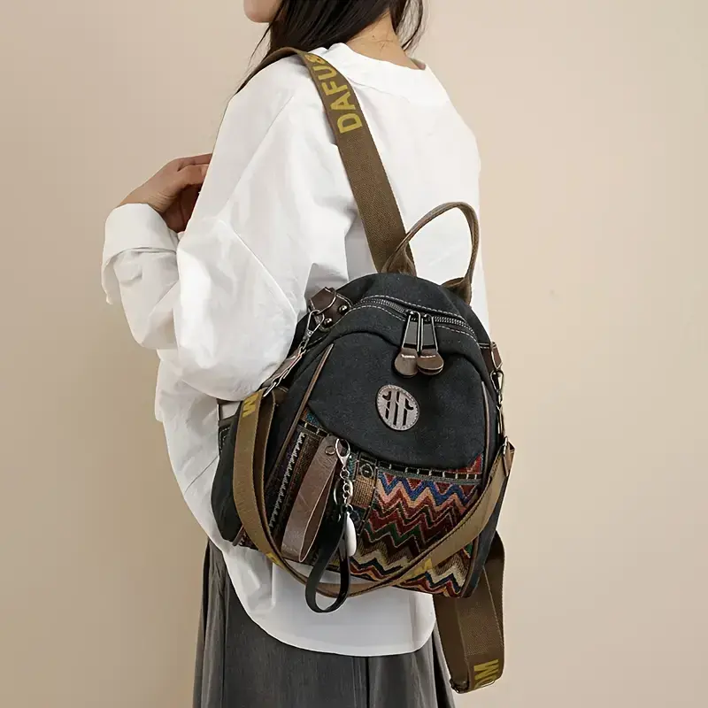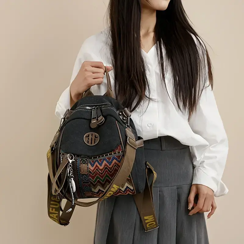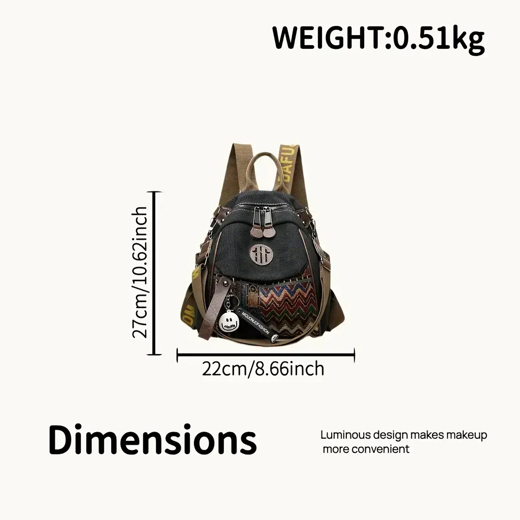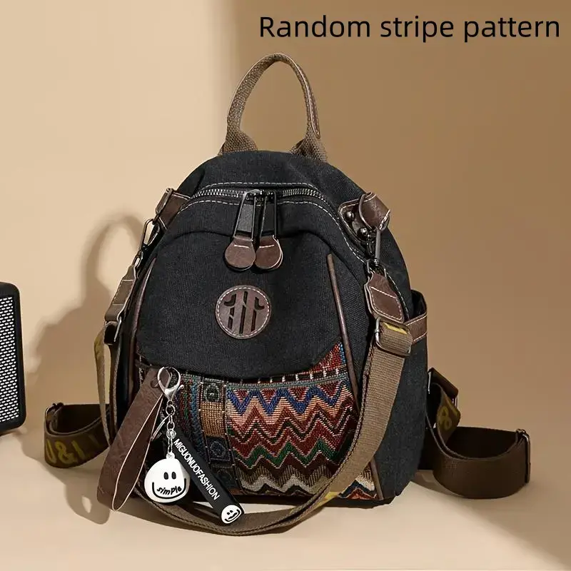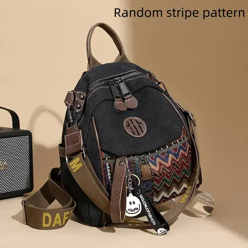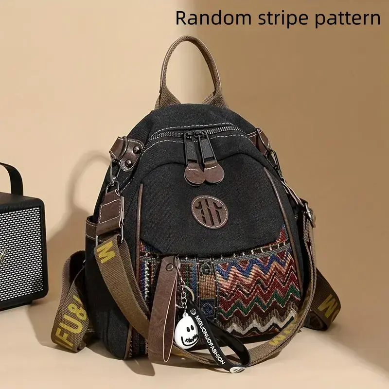 2in 1 Convertible Backpack Purse for Women - Boho Ethnic Pattern Crossbody Bag, Small Lightweight Shoulder Bag for Travel, Daily Use,Random stripe pattern Bookbag