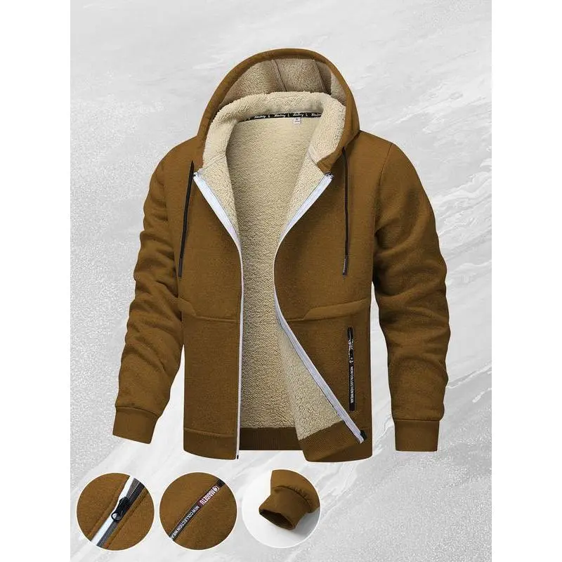 Men's Classic Hooded Warmth Jacket ? Stay Warm and Stylish ? This men's jacket is perfect for urban commuters. It features a fleece-lined design for skin-friendly heat. The adjustable hooded feature ensures a snug fit, while the ribbed hem adds a stylish touch. Ideal for windproof protection, it's a trendy choice for daily wear. Stay warm without compromising on style. This jacket is designed for the busy urban dweller. Its practical features make it a go-to choice for daily commutes. Enjoy both warmth and style with this classic hoodie. It's the ideal blend of functionality and fashion for your everyday adventures.