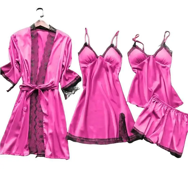 Sexy Lace Robe Dress Women's Silk Nightgown Suit Green Black and White Little-Girl Style Clothes Sleepwear Nightdress Comfortable Overall Dress Set with Lace Details-