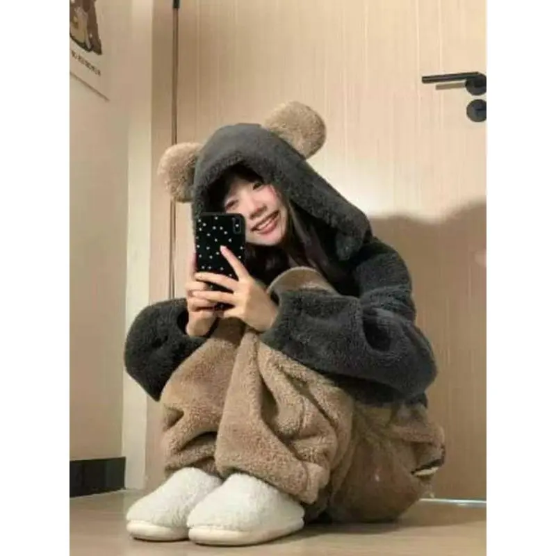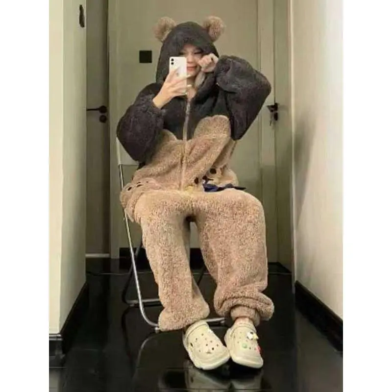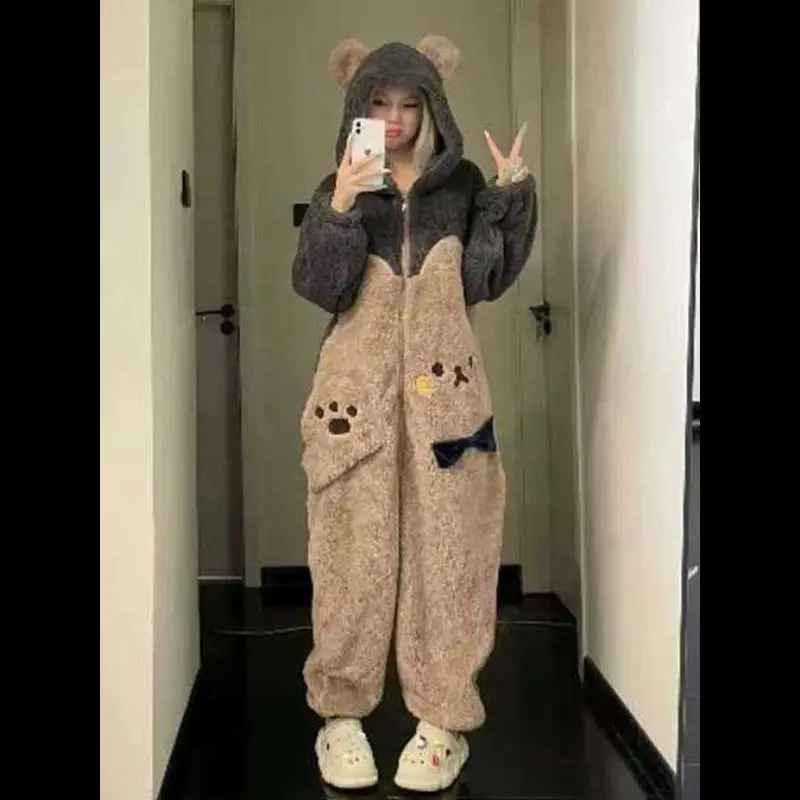 1pcs Women's Cute Cartoon Bear Hoodie Dress, Unicorn Design Winter Role Play Onesie, Christmas Party Casual and Pajamas