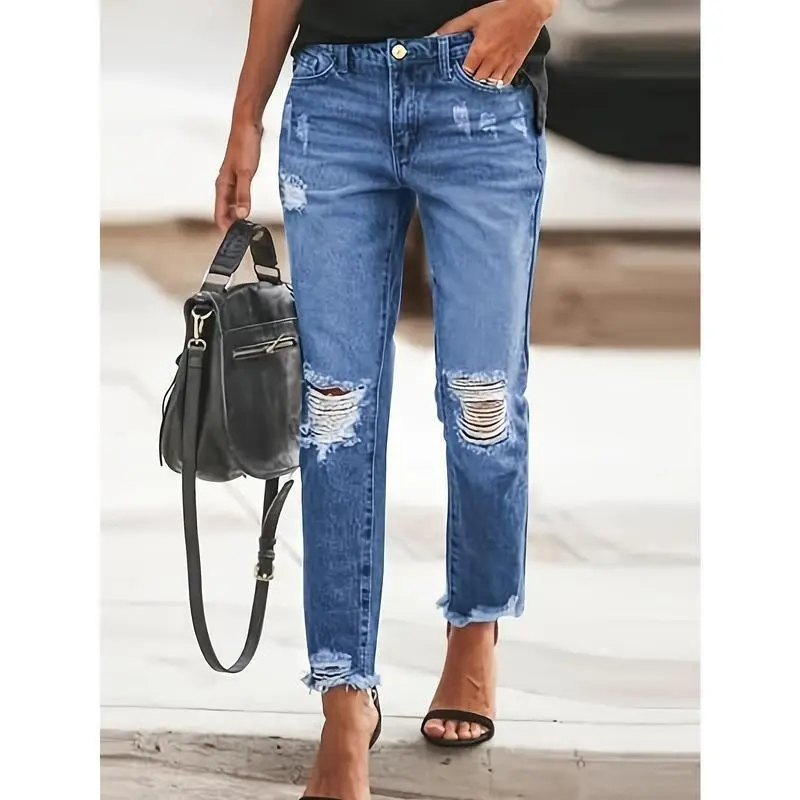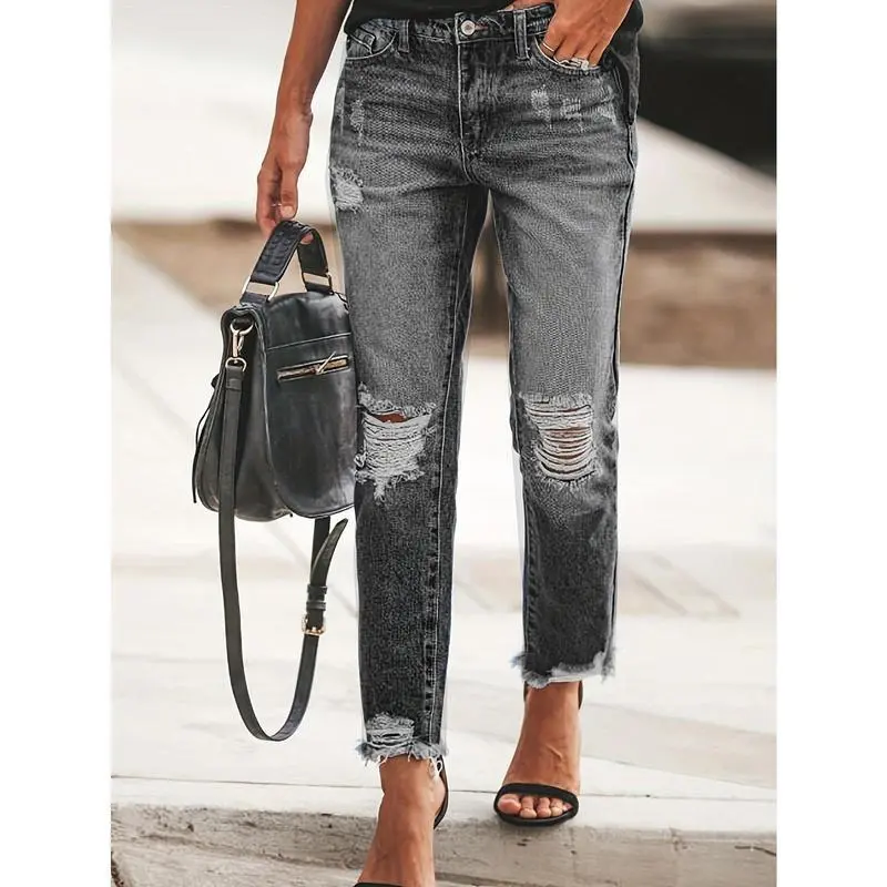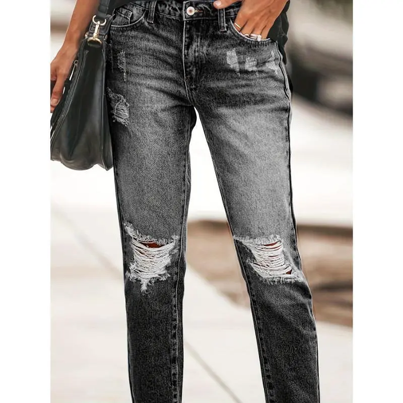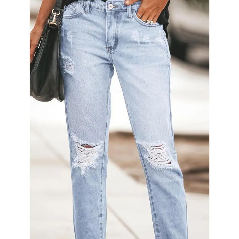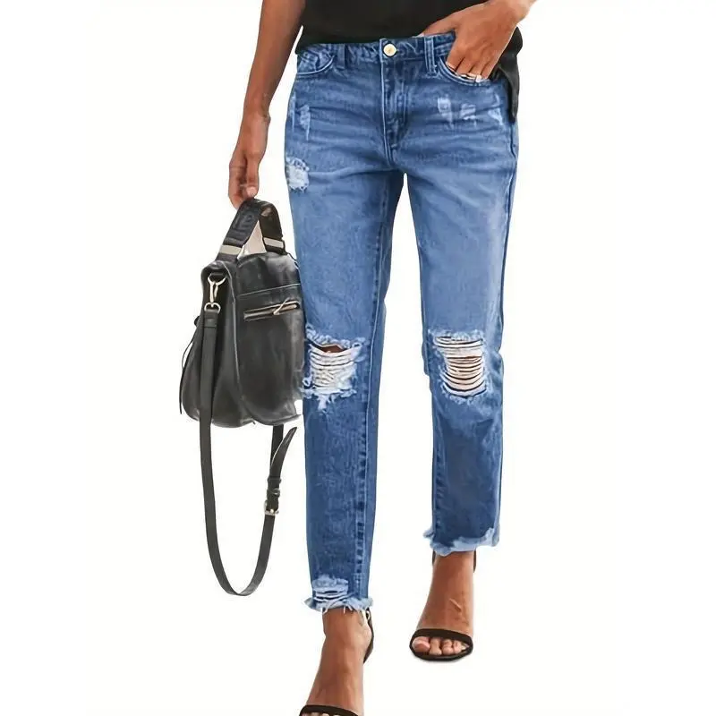 Women's Boyfriend Jeans Stretchy Ripped Distressed Denim Pants