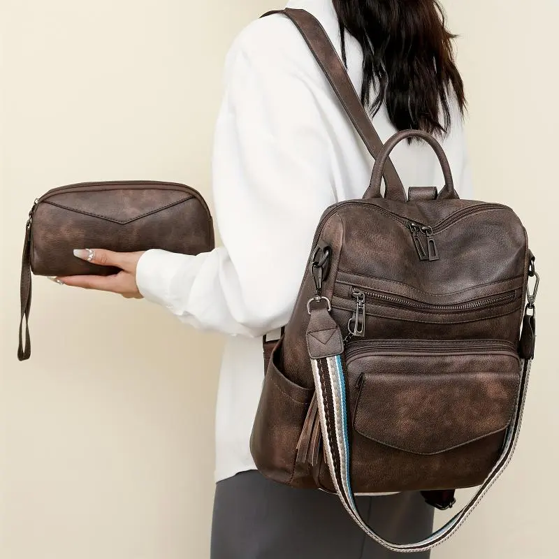 [Large Backpack Purse] Large Designer Backpack Purse Women | Fashion Tassel Ladies Shoulder Bags Travel Bag