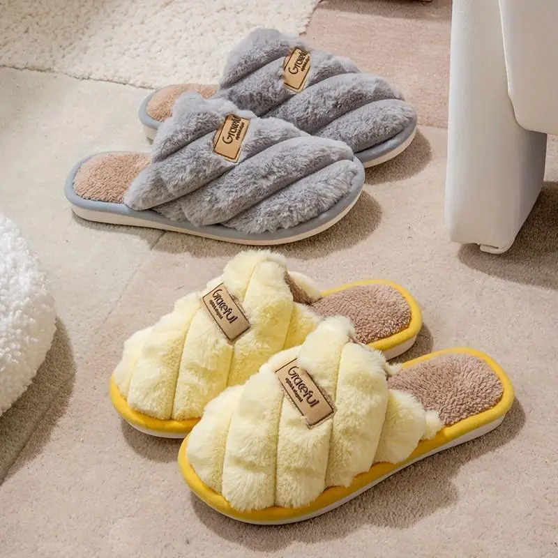 Trusted Cozy Plaid Colorblock Slippers for Men & Women Warm Non-slip Indoor Home Shoes with Soft Faux Rabbit Lining Footwear Flipflop Ivory White