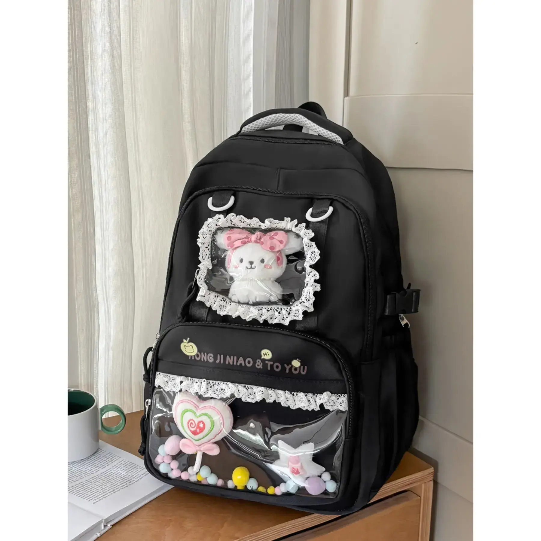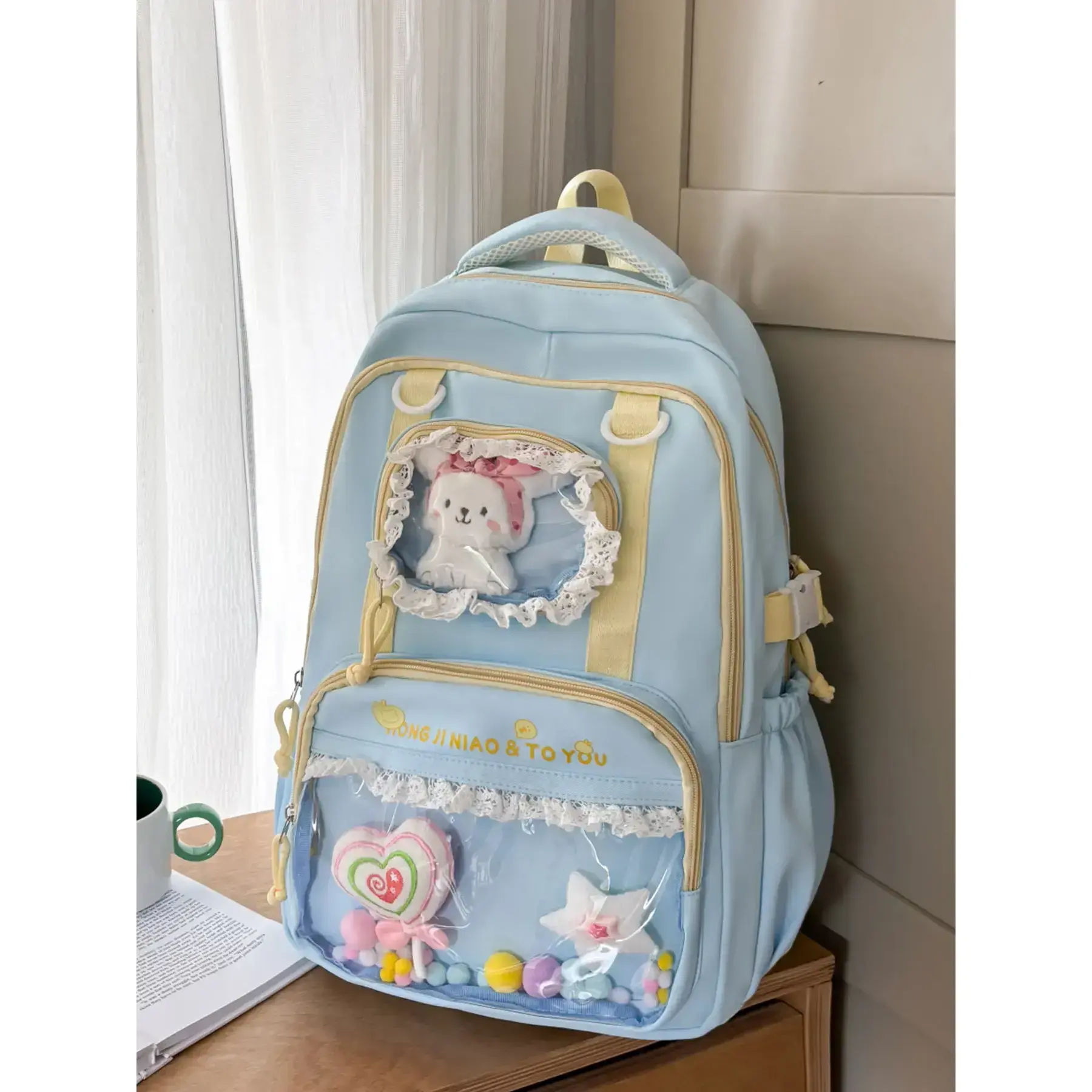 Women's backpack, solid color backpack, letter zipper closure, versatile, fashionable, casual, cute, suitable for students to go to school, campus, travel, shopping, camping, women's backpack, Trendy backpack