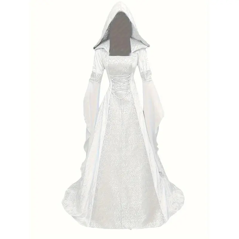 [GothicMedievalDress]BlackGothicWomen'sMedievalHoodedDress-A-LineCorsetRenaissanceCostumewithBellSleevesforHalloween,Cosplay,orThemedParties