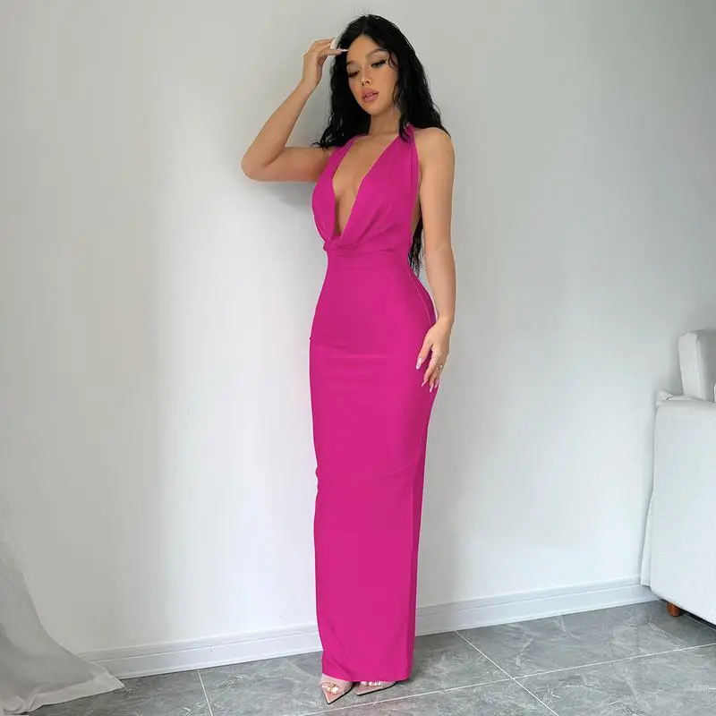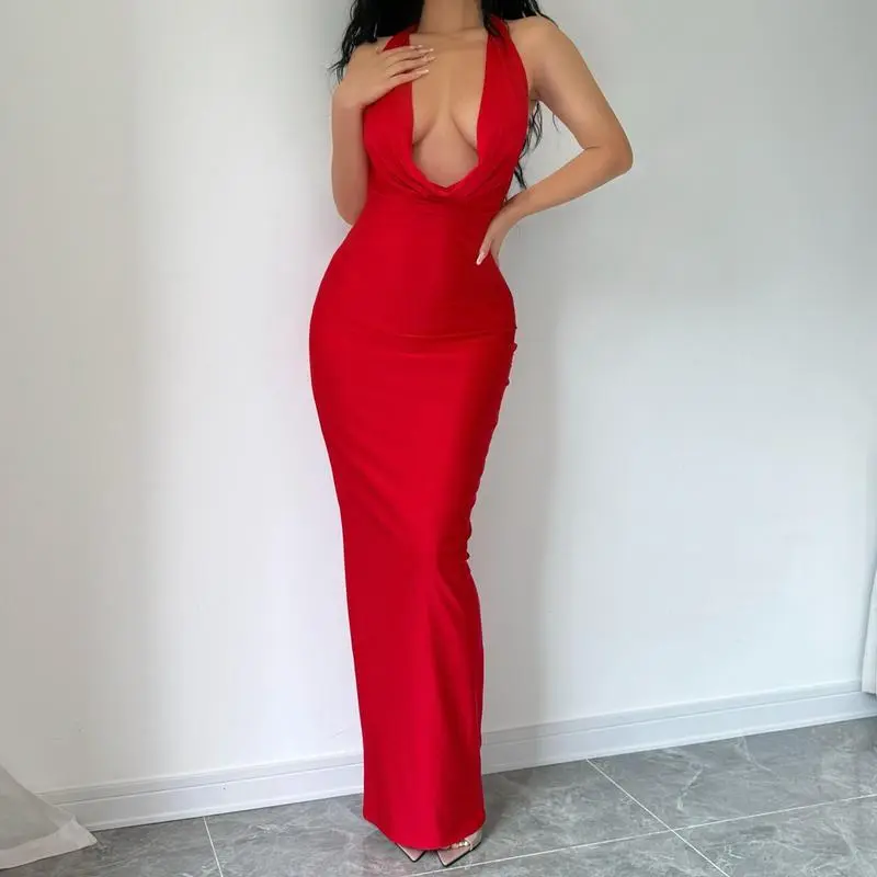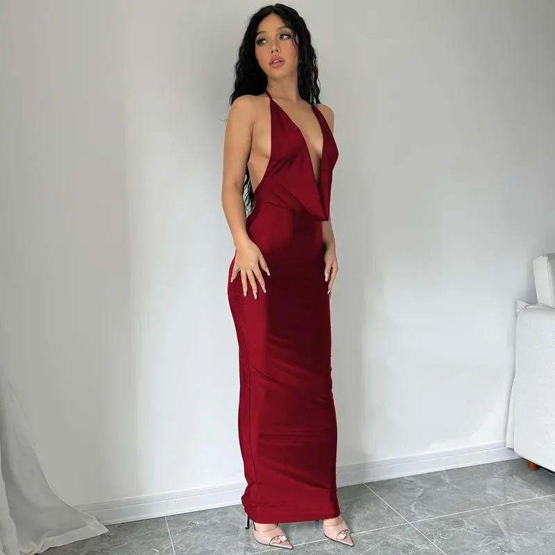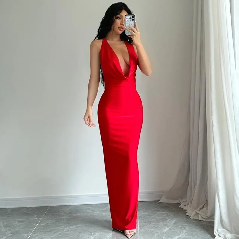 Backless Plunging Cowl Neck Halter Tie Party Vacation Maxi Dress Women's 2025 Summer New Trendy Form-Fitting Mermaid Hem Young Girls Party Club Dating Evening Gowns OutfitsGift