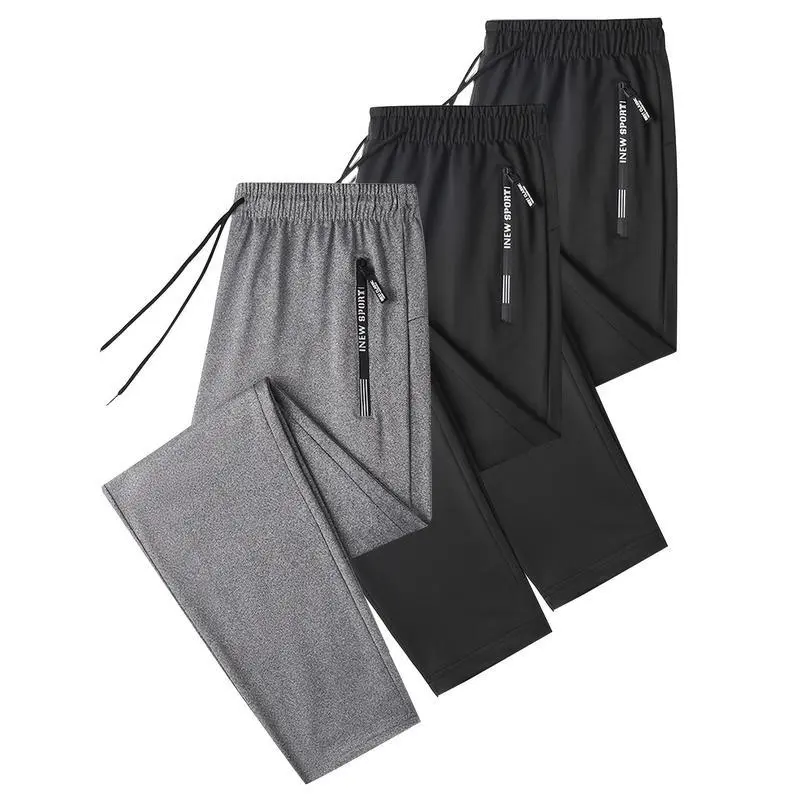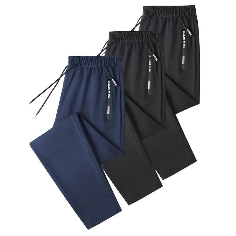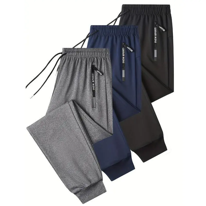 3-PackMen'sSolidColorSportsJoggers,withLetterPrintZipperPocketsandDrawstring-BreathablePolyesterBlend,All-SeasonFitnessCasualWear,All-SeasonJoggers|Sportyappearance|Smoothtexturedfabric