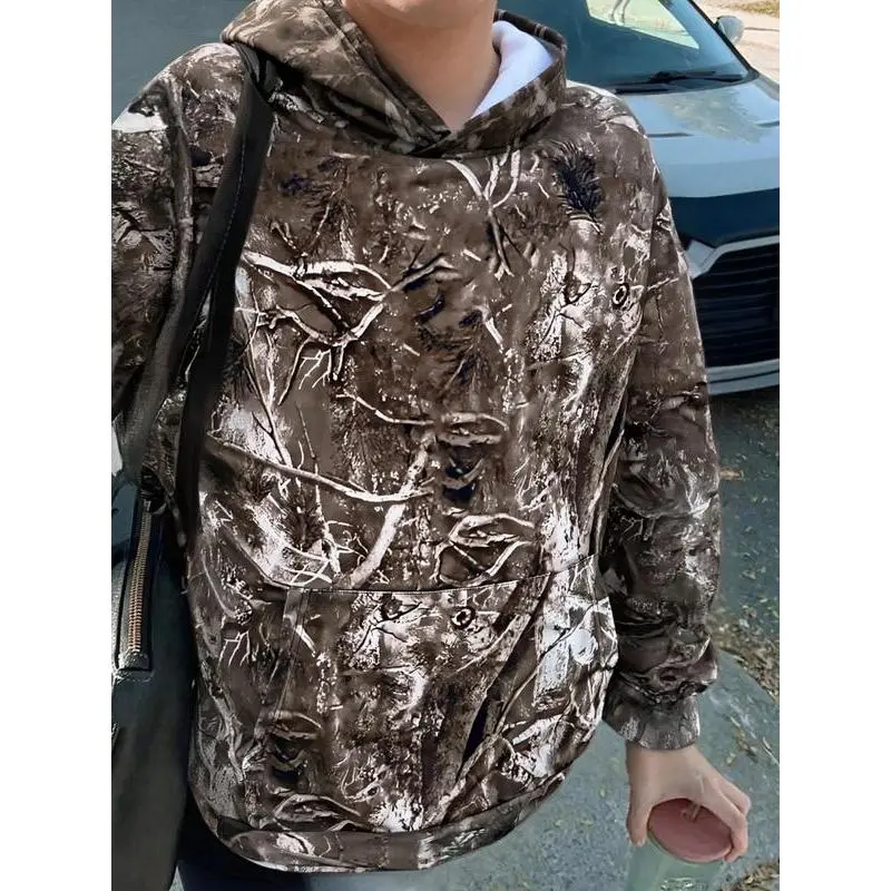 【Unique Camouflage】: Featuring a retro branch camouflage pattern, this hoodie stands out from typical graphic prints available today. 【Moderate Thickness】: Crafted with moderate fabric thickness, offering sufficient warmth for autumn and winter without excessive bulk. 【Fitted Cut】: Tailored with a fitted fit, providing a structured silhouette that enhances your natural shape while wearing. 【Seasonal Versatility】: Engineered for fall and winter, this hoodie adapts to colder climates, serving as an essential layer. 【All Over Print】: Emphasizing an all-over print pattern, it adds a continuous visual appeal,integrating unique designs throughout the garment.