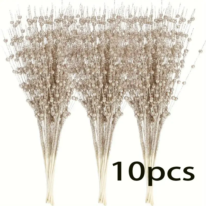 10 artificial sparkling berry stems for decoration. Select decorative beads from the Christmas glittering branches. Suitable for DIY wreaths for Christmas trees, handmade crafts as gifts, small flower vases for home decoration Decoration Bouquet
