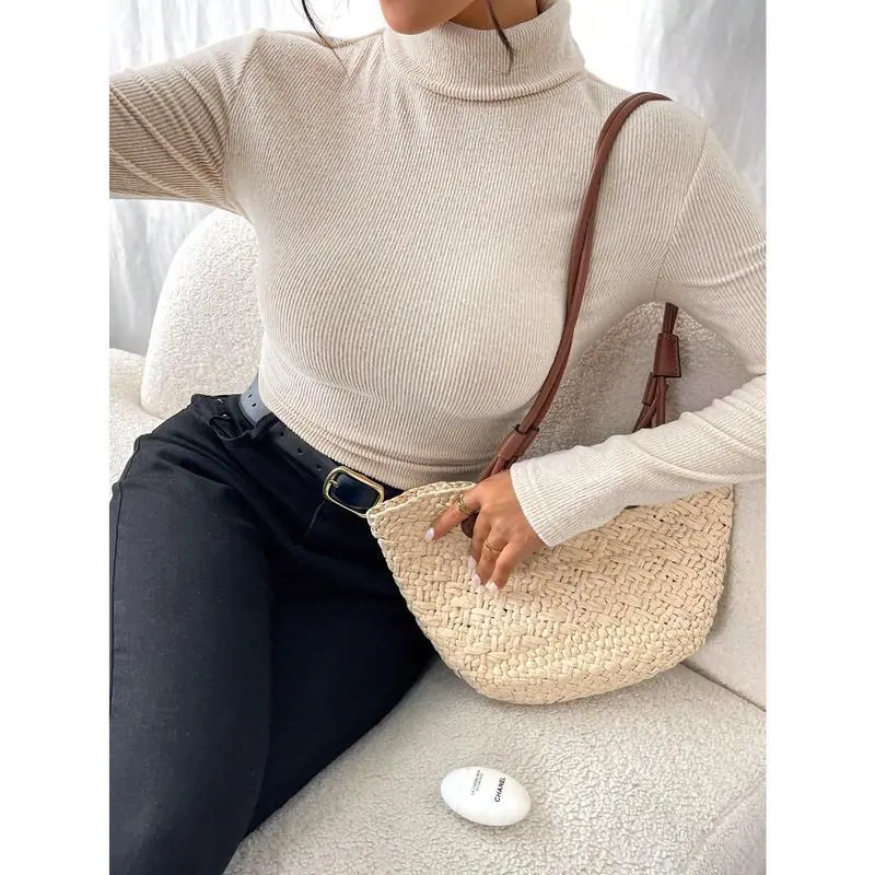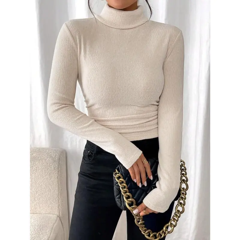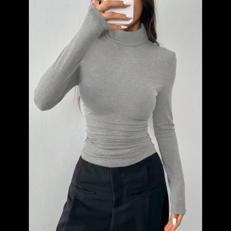 ColorHighNeckFittedCasualTurtleneckT-Shirt,Autumn/Winter,HighLapel,Tight-FittingLong-SleevedTop,MadeOfFleeceTextureFabric,WarmAndComfortable