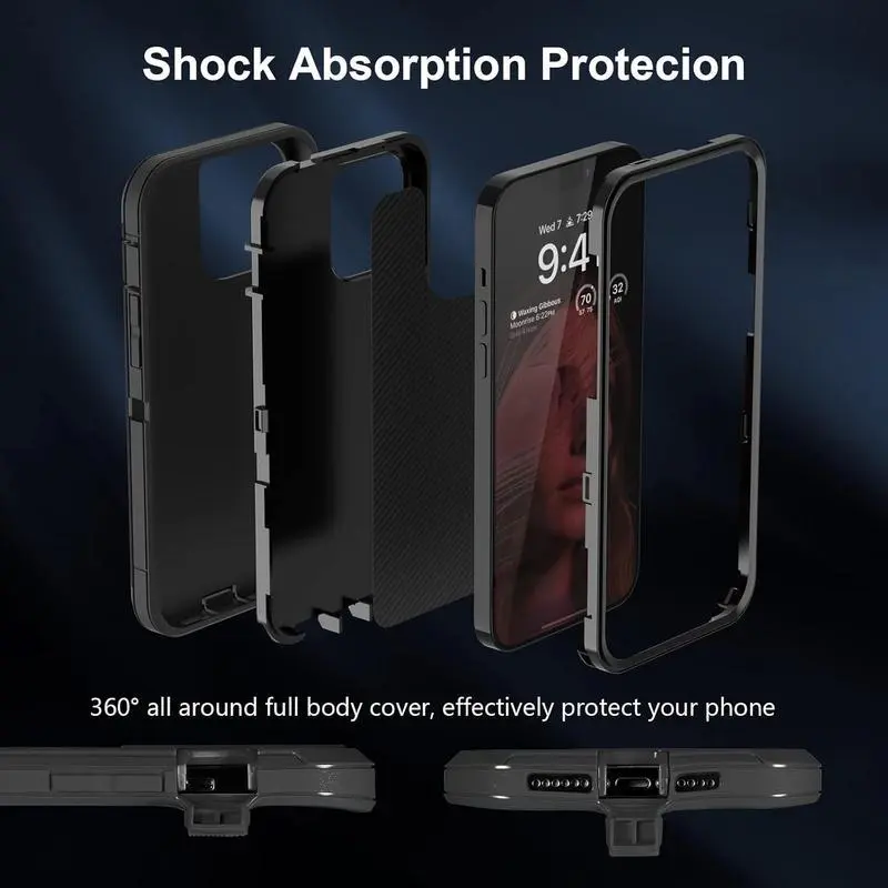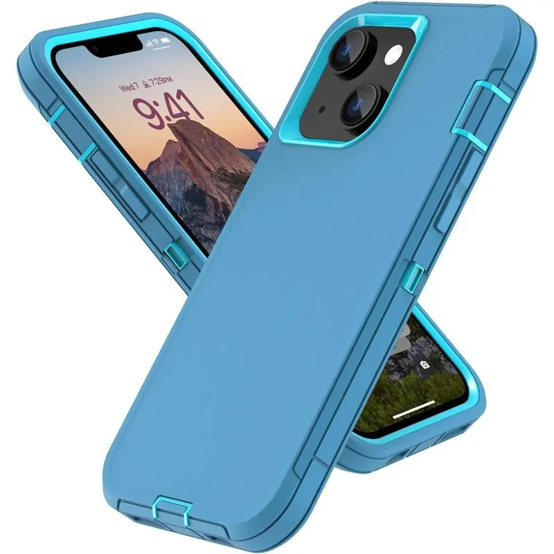 for iPhone 13 & 15 Case, for iPhone 14 Protective Case, 3 Layer Heavy Duty Shockproof Silicone Rubber Cover, Rugged Hybrid Durable Case for iPhone 13/14/15 6.1 Inch (Black)