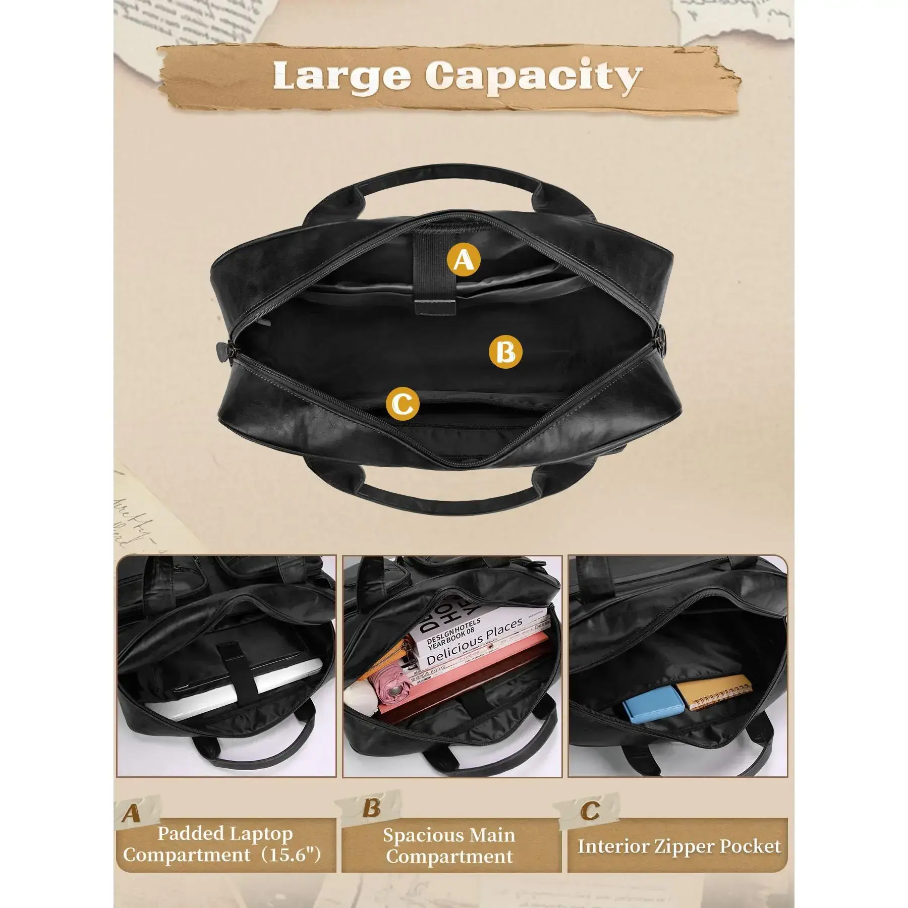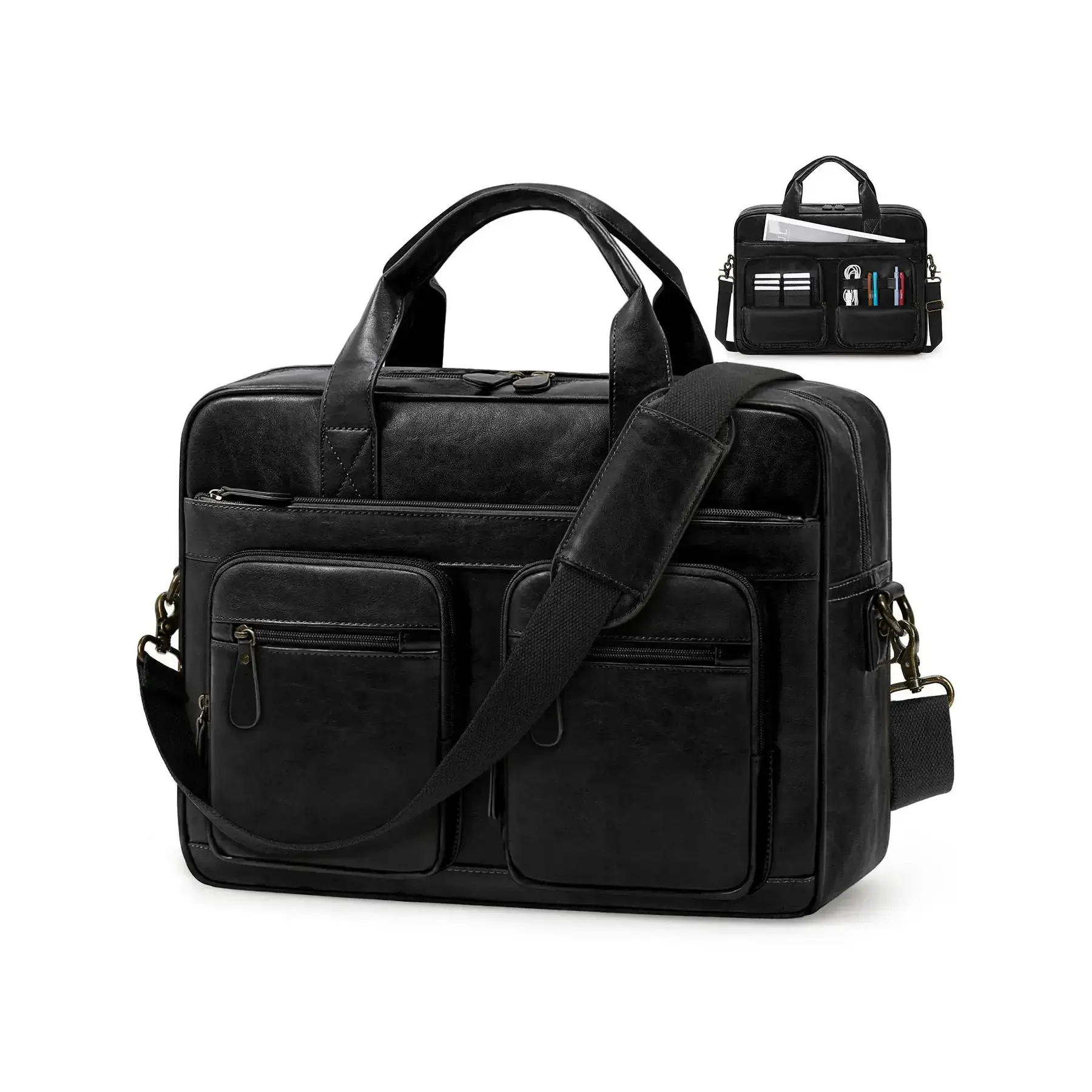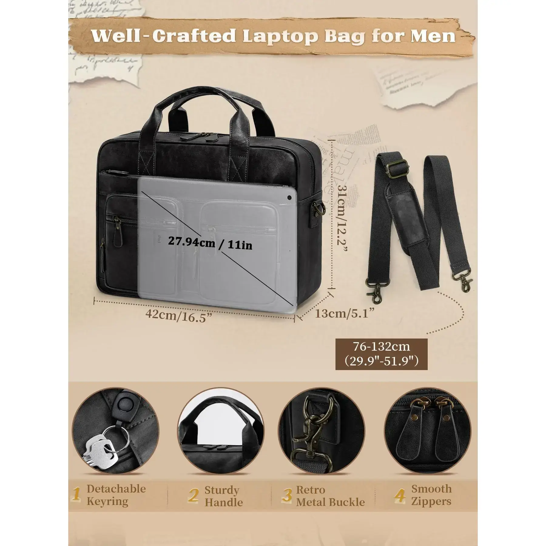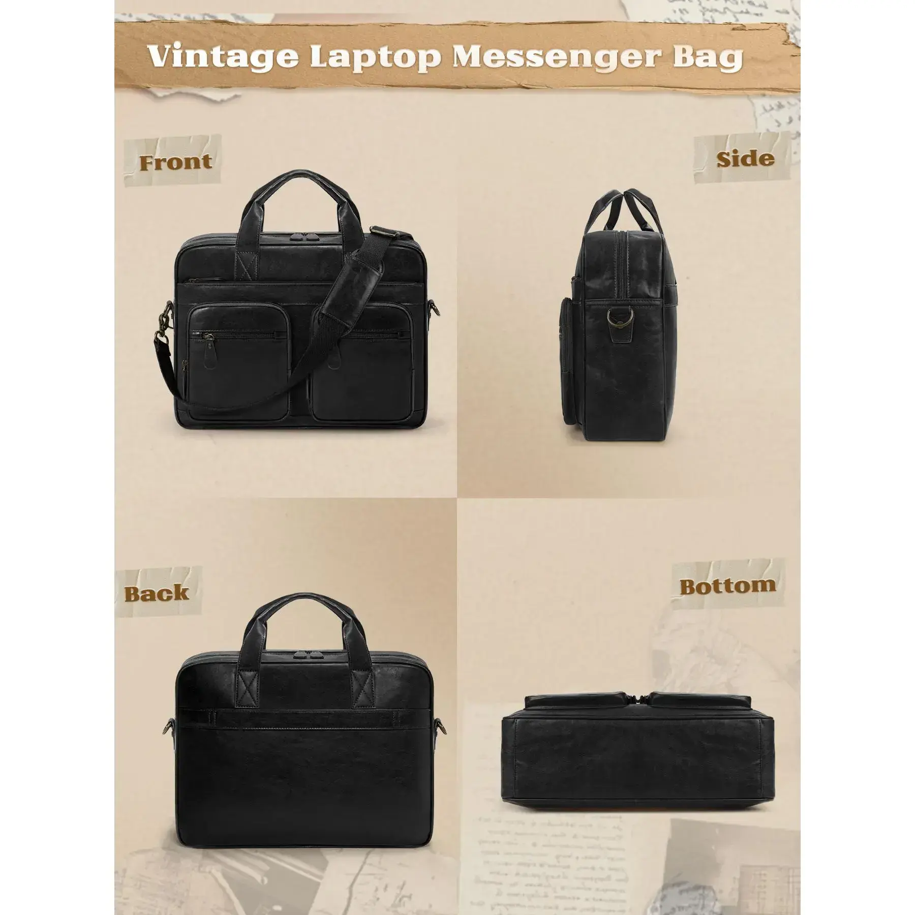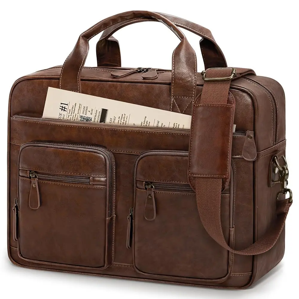 Men's Vintage Messenger Bag, PU Leather Computer Laptop Bag, Waterproof Briefcase for Men, Retro Satchel Bag for Work Office Business Travel, Travel Essentials