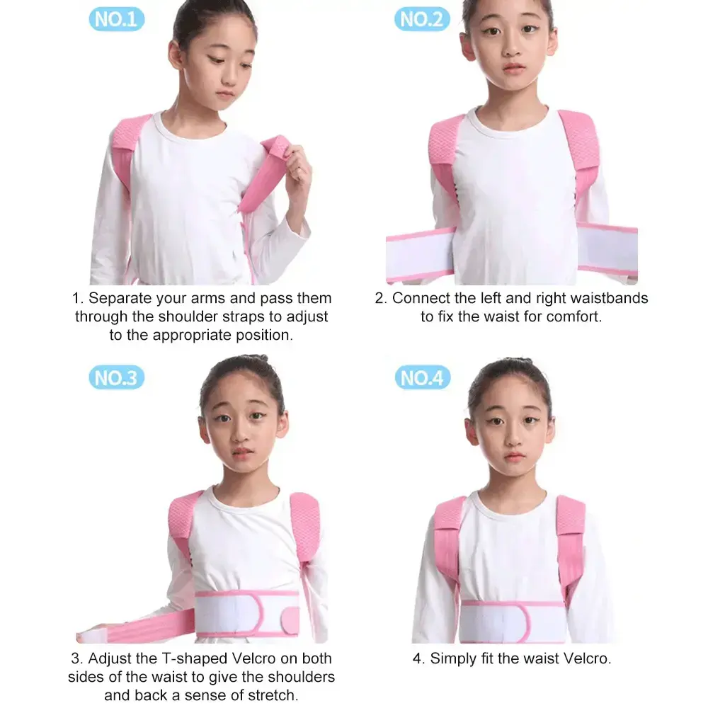 Adopting high quality material, which is breathable, durable and comfortable to wear. Ergonomics opposite direction strengthen type design will get better effect, detachable and adjustable shoulder pad will protect your shoulder or back from damaging cased by friction. Providing support for your shoulders and back, which will help to prevent humpback and curvature of the spine, correct poor postures to keep a correct sitting, standing, walking posture. Help to balance stress on the shoulder, back, waist, abdomen, relieve muscle fatigue, and protect the waist, back and spine. Can help to prevention of myopia occurred, it will gently pull back the shoulders, the neck and head are straightened while correcting the spine, this will gradually restore a reasonable distance with the eyes and correct pseudo-myopia. Strong hook and loop on the waist belt is durable and easy to wear and take off 1. Fasten the waist belt. 2. The shoulder strap through from the armpit to the shoulder 3. Cross the shoulder strap and across under the ribs. 4. Stick the shoulder strap on the waist belt. 1. Please use comfortable strength to tight while wearing. 2. Please unfasten the belt for about 10 minutes every 2 hours using. 3. Please hand wash, do not bleach, wring and dry naturally. 4. Suggest using age should above 5 years old. 1 * Children Posture Corrector Belt
