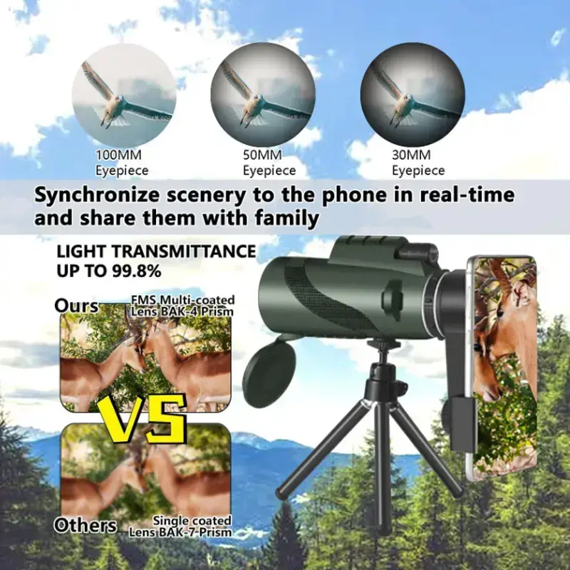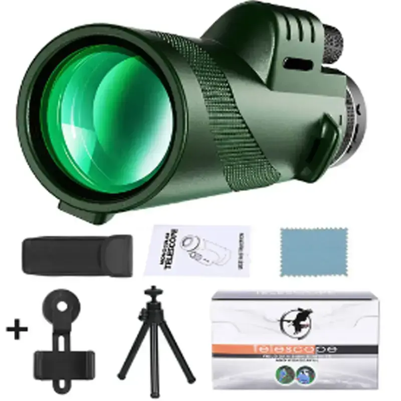 80x100 monocular telescope, high magnification HD focusing, FMC multi-layer broadband coating, compact and portable, phone photography professional concert travel binoculars