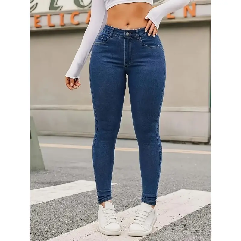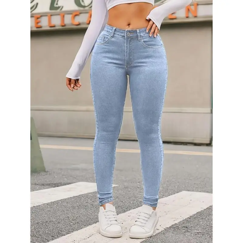 [Stretch Skinny Jeans] Light Blue Stretch Jeans - Women's High-Waisted Slim Fit, Lifted & Shaped Design, Machine Washable, Casual Attire