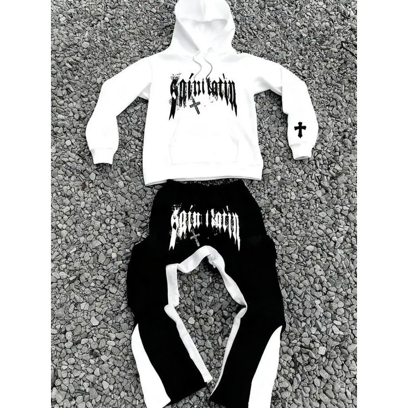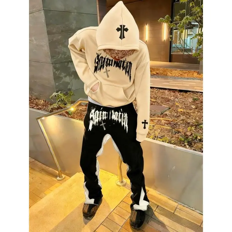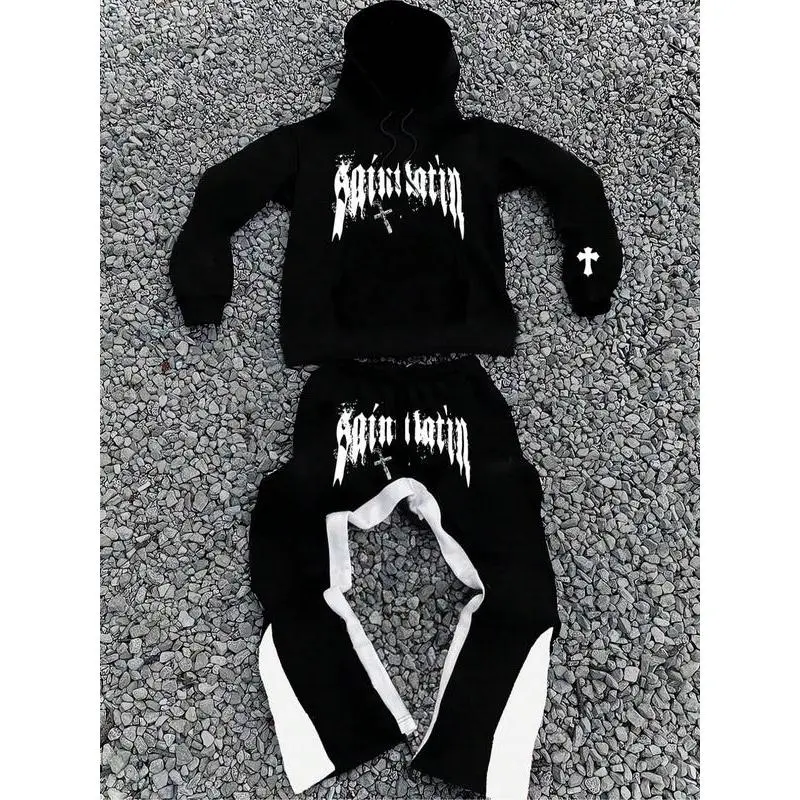 【Gothic Cross Pattern】: Distinctive gothic cross pattern enhances the overall aesthetic, setting it apart from typical hoodies and pants. 【Fitted Silhouette】: Features a fitted cut that flatters the body’s natural shape while ensuring a contemporary outdoor look. 【Geometric Theme】: Incorporates geometric patterning, providing a unique artistic element that adds visual interest and character. 【Seasonal Fabric】: Constructed with materials suitable for fall and winter, ensuring warmth during cooler months without compromising aesthetics. 【Practical Suitability】: This two-piece attire is appropriate for multiple occasions, whether lounging at home or engaging in outdoor activities.