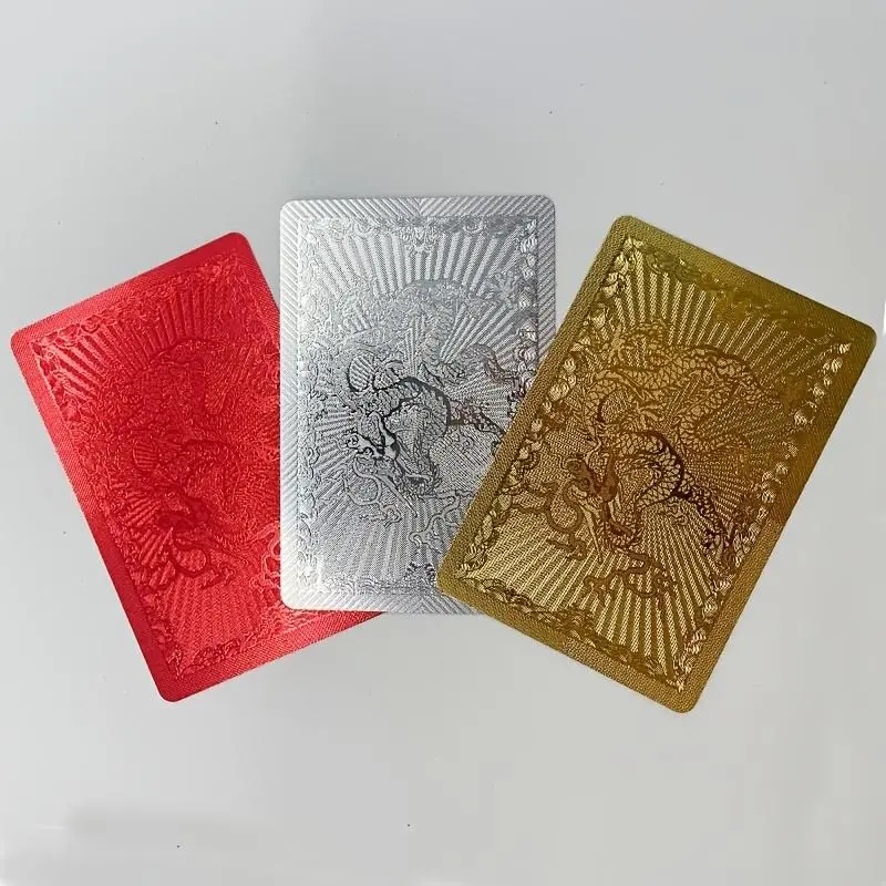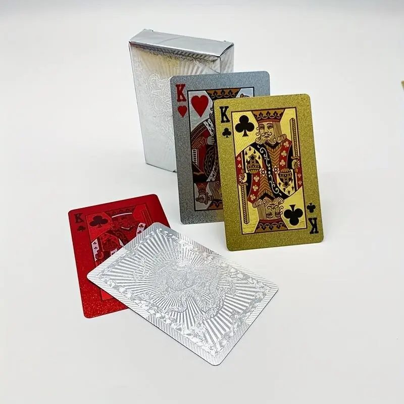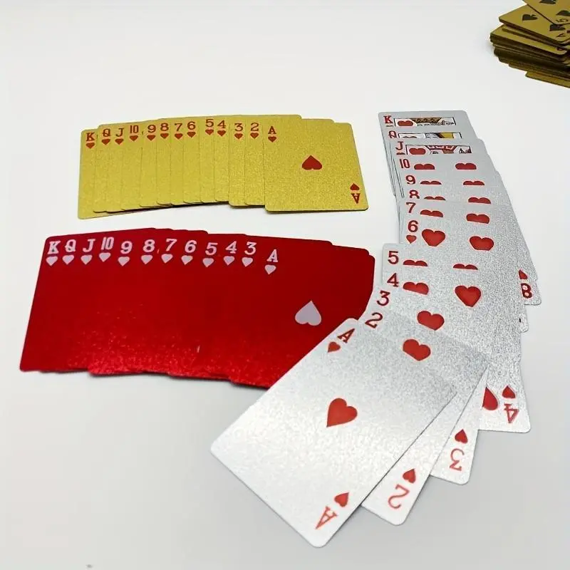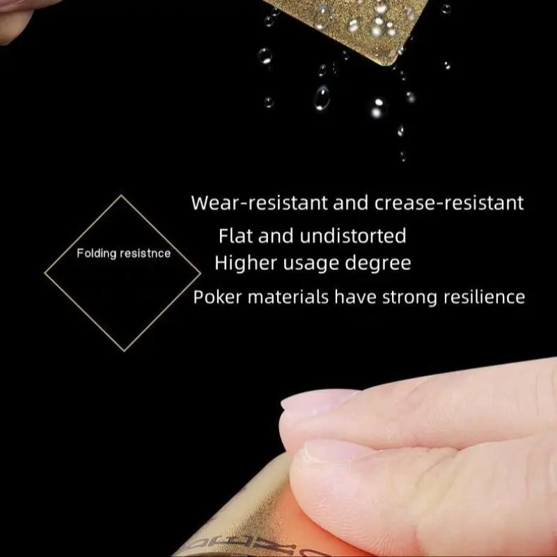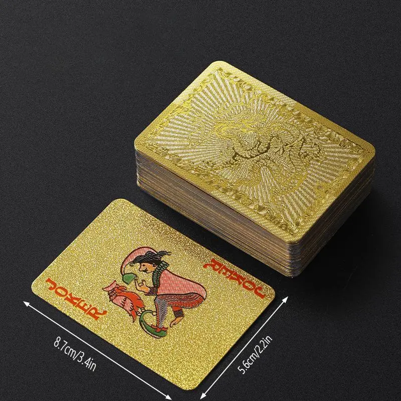 【Waterproof Material】: Constructed from high-quality PVC, these cards are waterproof, ensuring durability and longevity for all your games. 【Anti-Bend Feature】: Designed to resist bending and folding, maintaining a sleek and pristine condition even after repeated use. 【Creative Aesthetics】: Featuring a unique golden color, these cards offer a visually striking appearance, making your gaming experience more exciting. 【Large Quantity】: Includes 55 premium cards, providing everything you need for a variety of popular card games and activities. 【Non-Wooden Material】: Crafted without any wooden materials, this product ensures an integrated experience that emphasizes a modern touch.