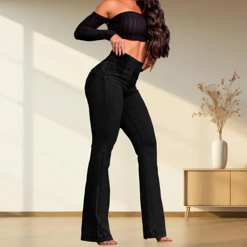 Dear customer, please carefully review the size chart before purchasing. The size chart indicates the pant length. These pants are relatively long, so petite women should choose the appropriate pant length and size based on their height. The waistband is elastic, so please carefully check the waist measurement on the size chart before selecting the correct size. Thank you again for browsing. Following the European and American trends, the high waist raises the waistline, lengthens the legs, and tightens the abdomen to show elegance. The flared pants start from below the knees, which is retro and fashionable. Selected denim fabric containing 65% cotton and 35% polyester. Cotton is breathable and soft, dry and comfortable to wear in summer. Polyester fiber gives the pants excellent elasticity, and the fabric is wear-resistant and wrinkle-resistant, and durable. Style and effect: Unique hip-lifting cut makes the buttocks more upright. It is equipped with pockets for easy storage and the waistband is elastic, which is comfortable to wear and suitable for different body shapes and scenes. Fabric composition: Polyester fiber (60%), cotton (30%), spandex (10%).