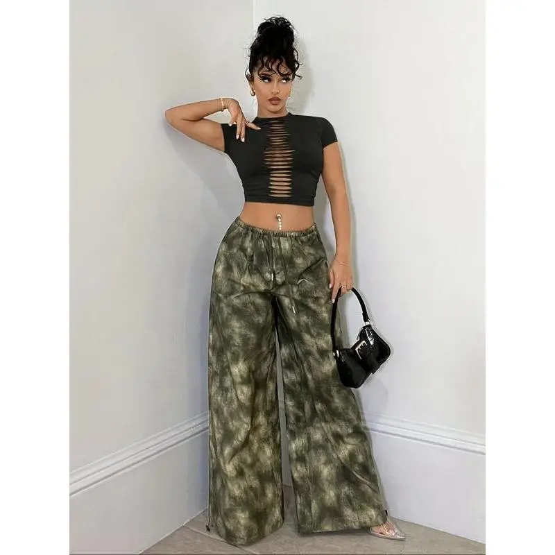 Women's Plain Hollow Out Round Neck Crop Tee, Casual Sexy Short Sleeve Crew Neck T-shirt for Summer, Fashion Women's Top for Daily Wear, WomenswearGift