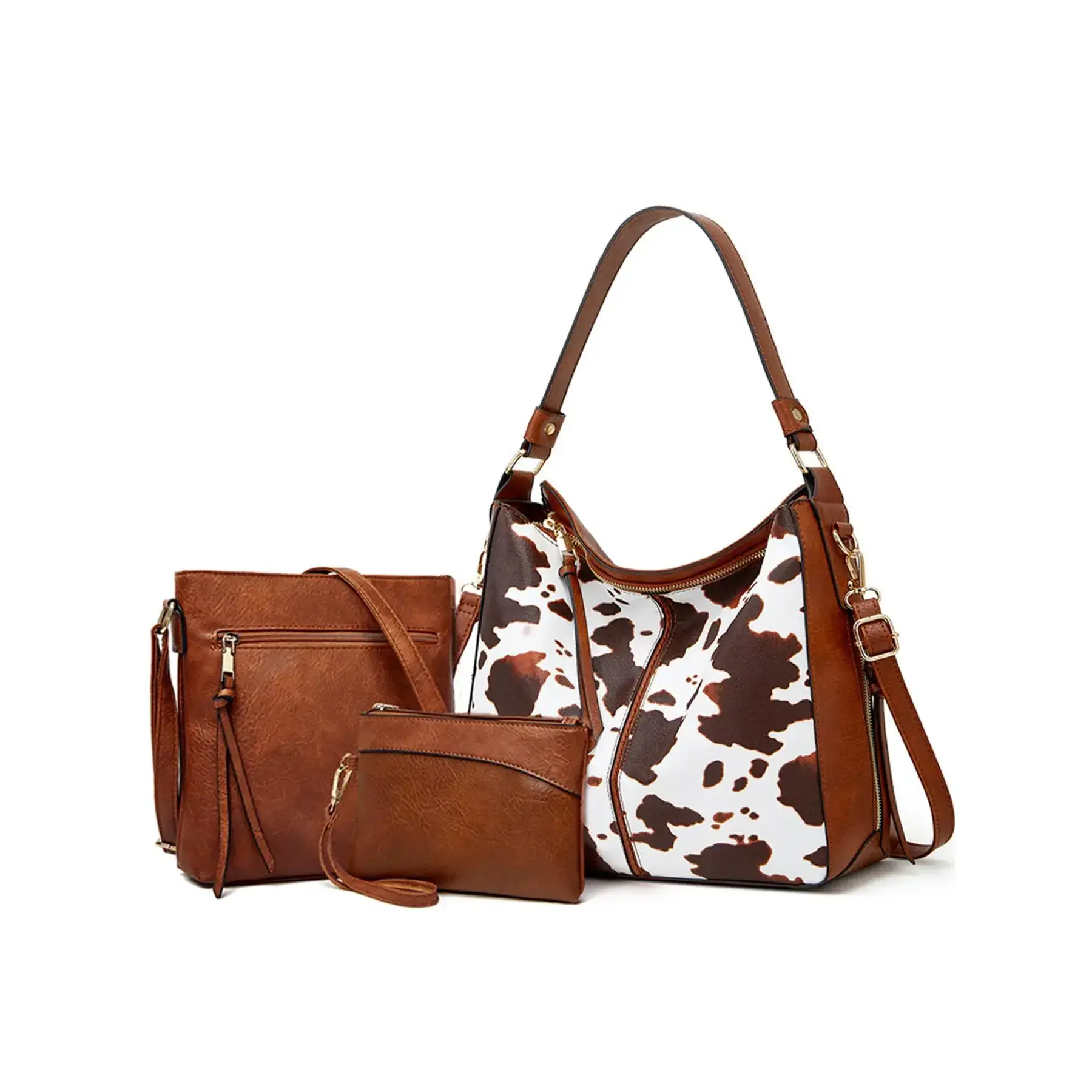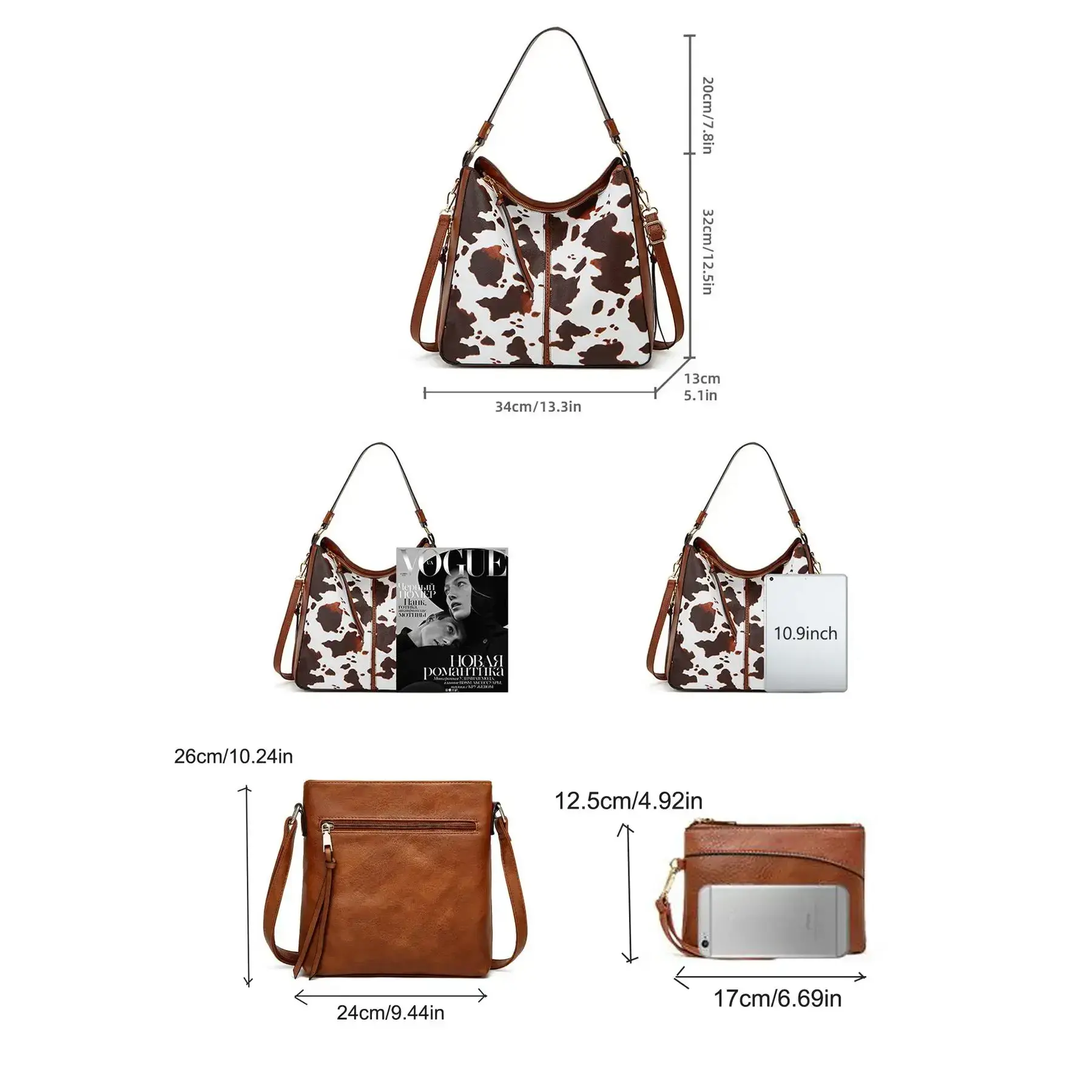 Women's Elegant Leopard Print Tote Bag & Wristlet & Crossbody Bag, Fashionable Large Capacity Bag Set, Casual Business Bag Set