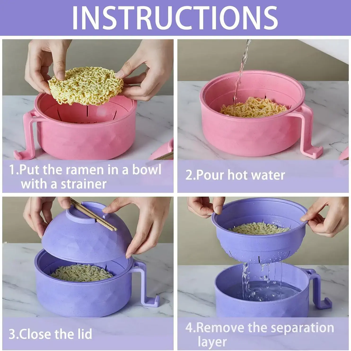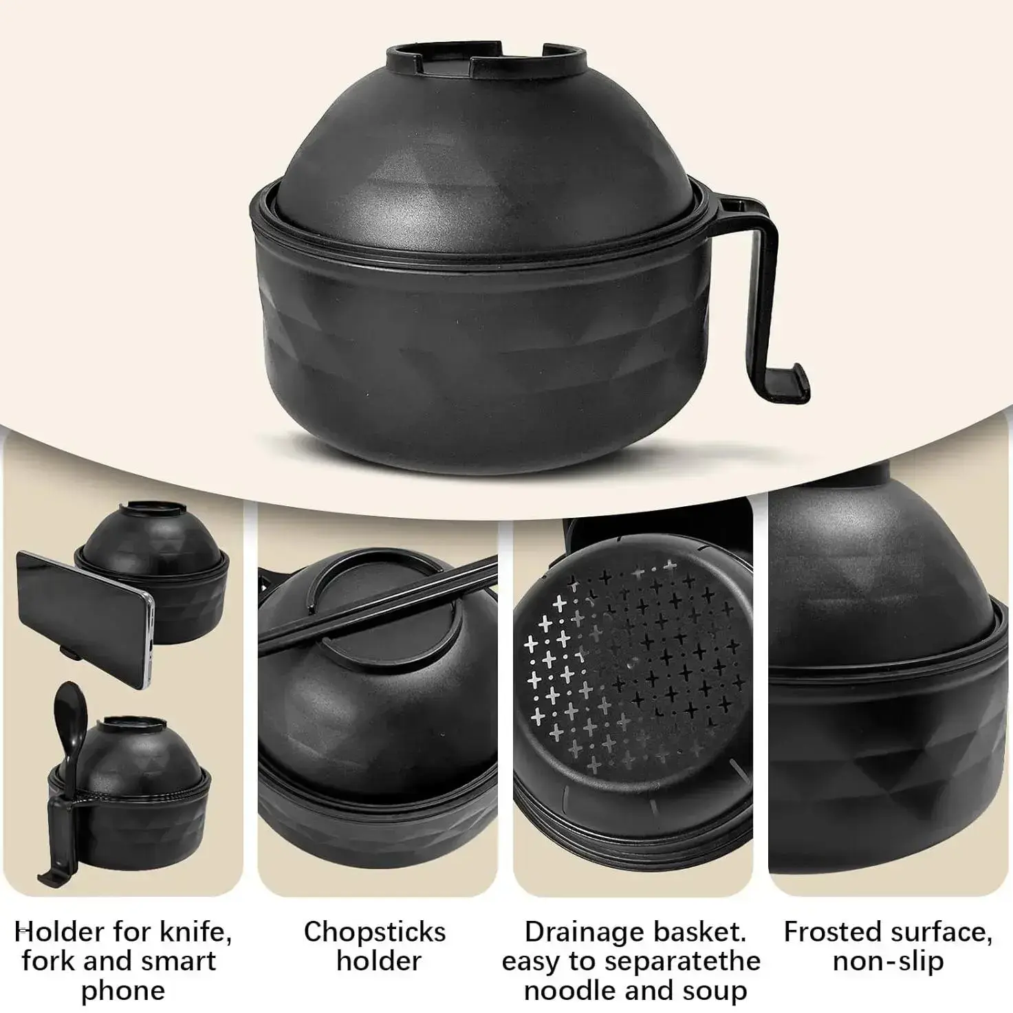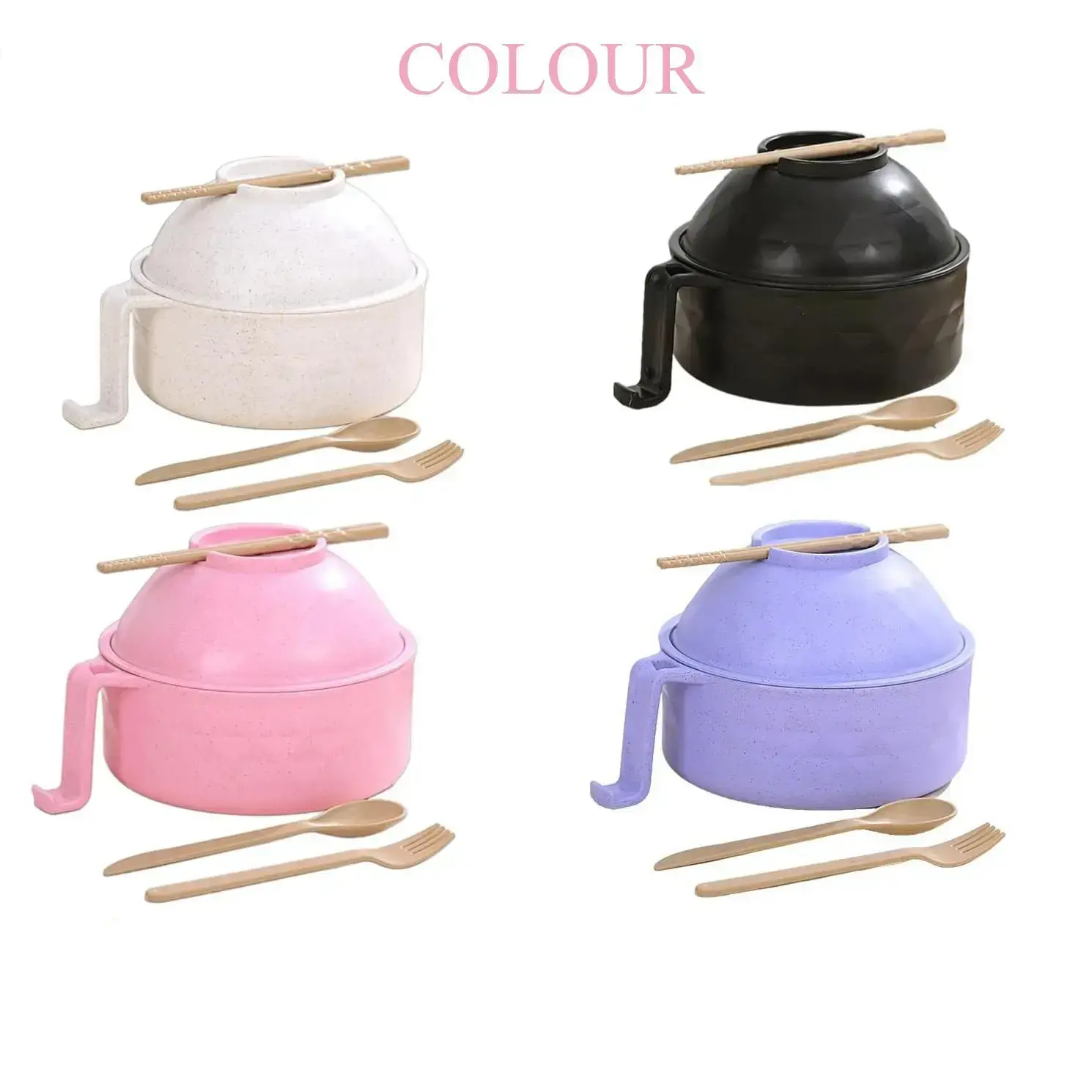 【Complete Set】: Included are two bowls, lids, spoons, chopsticks, and forks, making this a comprehensive tableware solution. 【Microwave Safe】: These ramen bowls are designed to be microwave safe, allowing for convenient heating of your meals. 【Travel-Friendly】: The portable design is perfect for use in home, office, dormitory, or apartment settings, enhancing flexibility. 【No Wood Materials】: Crafted without wooden materials, this set avoids common allergens and offers durable, easy-to-clean alternatives. 【Variety of Utensils】: This set includes a variety of utensils, catering to diverse preferences and enhancing your dining experience.