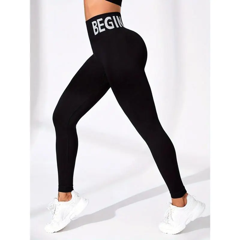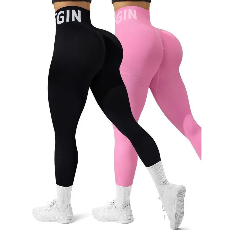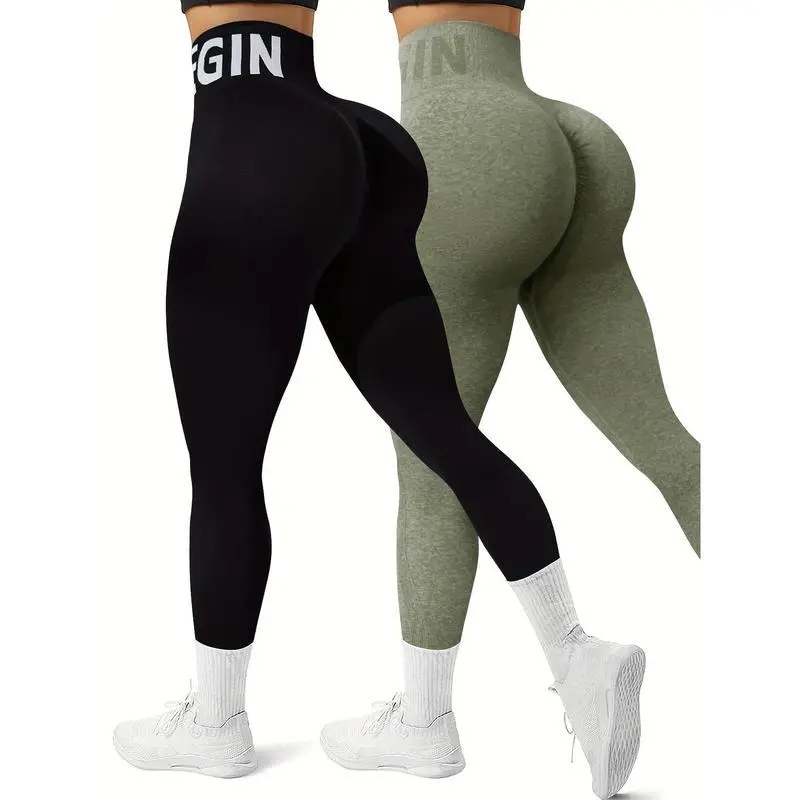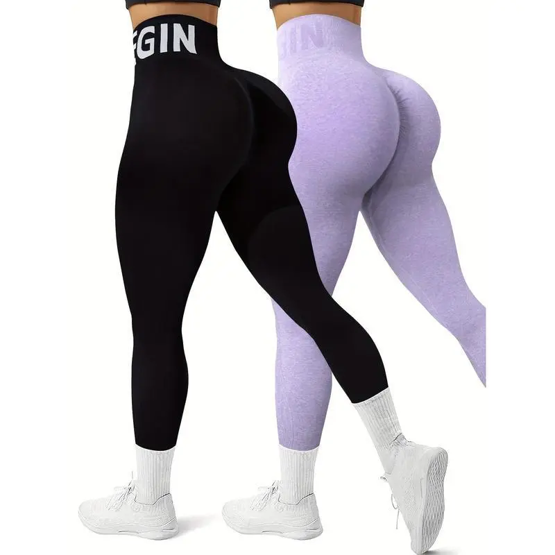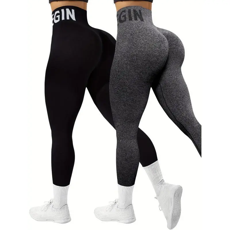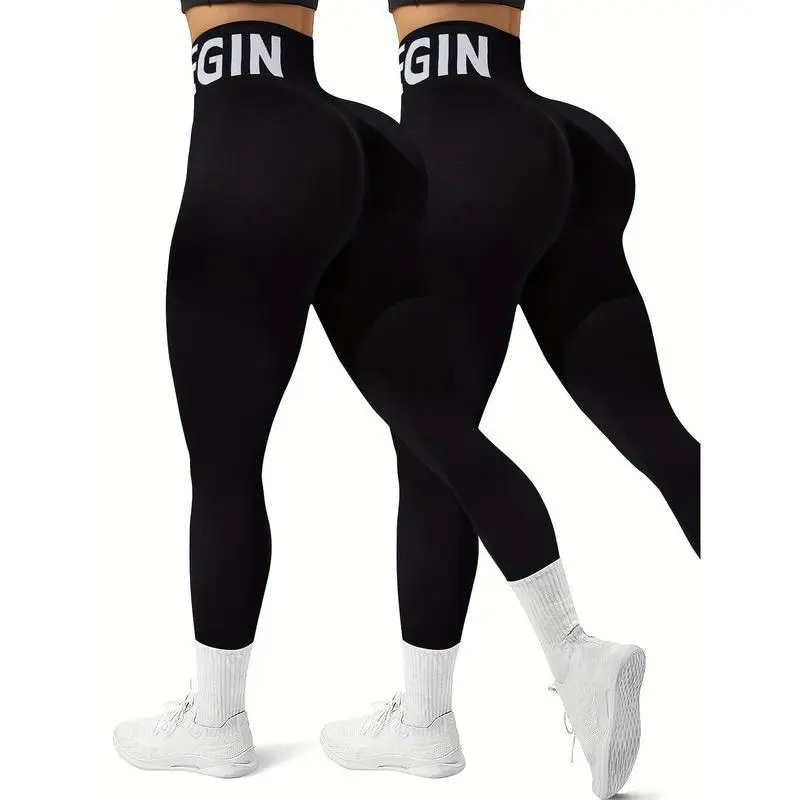 2PackSeamlessHighWaistSportsLeggings,KnitHighStretchLetterPrintYogaGift