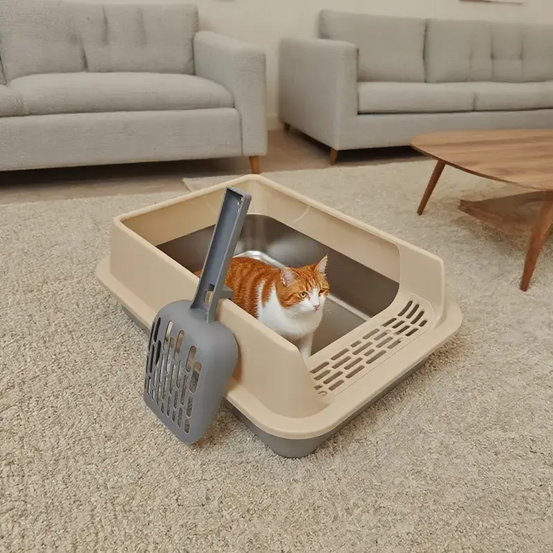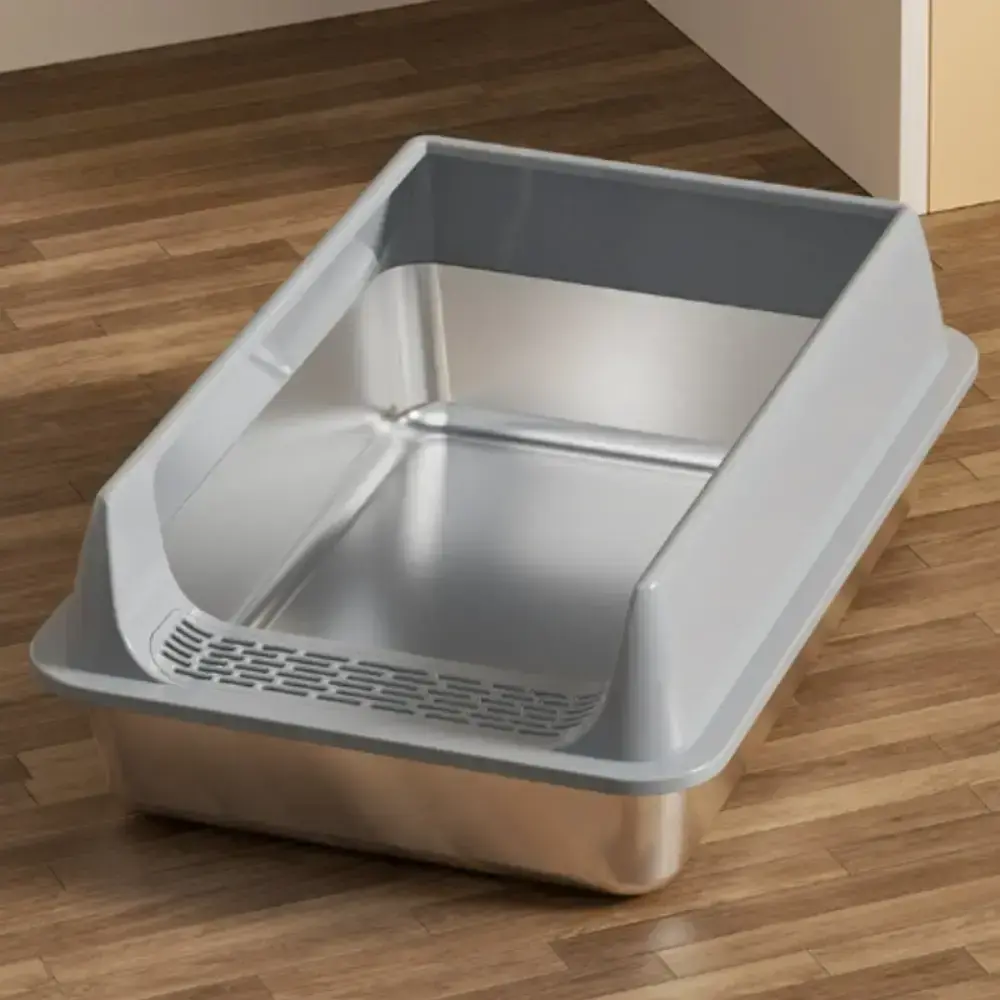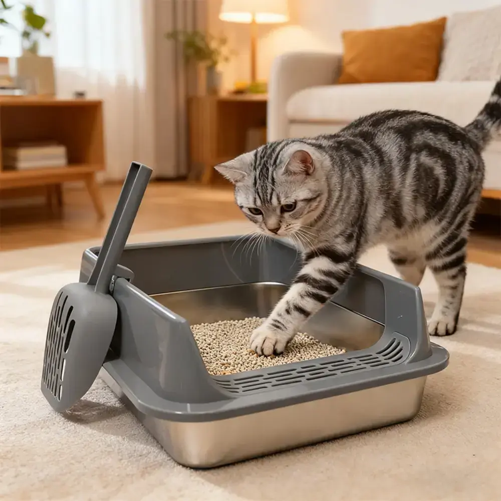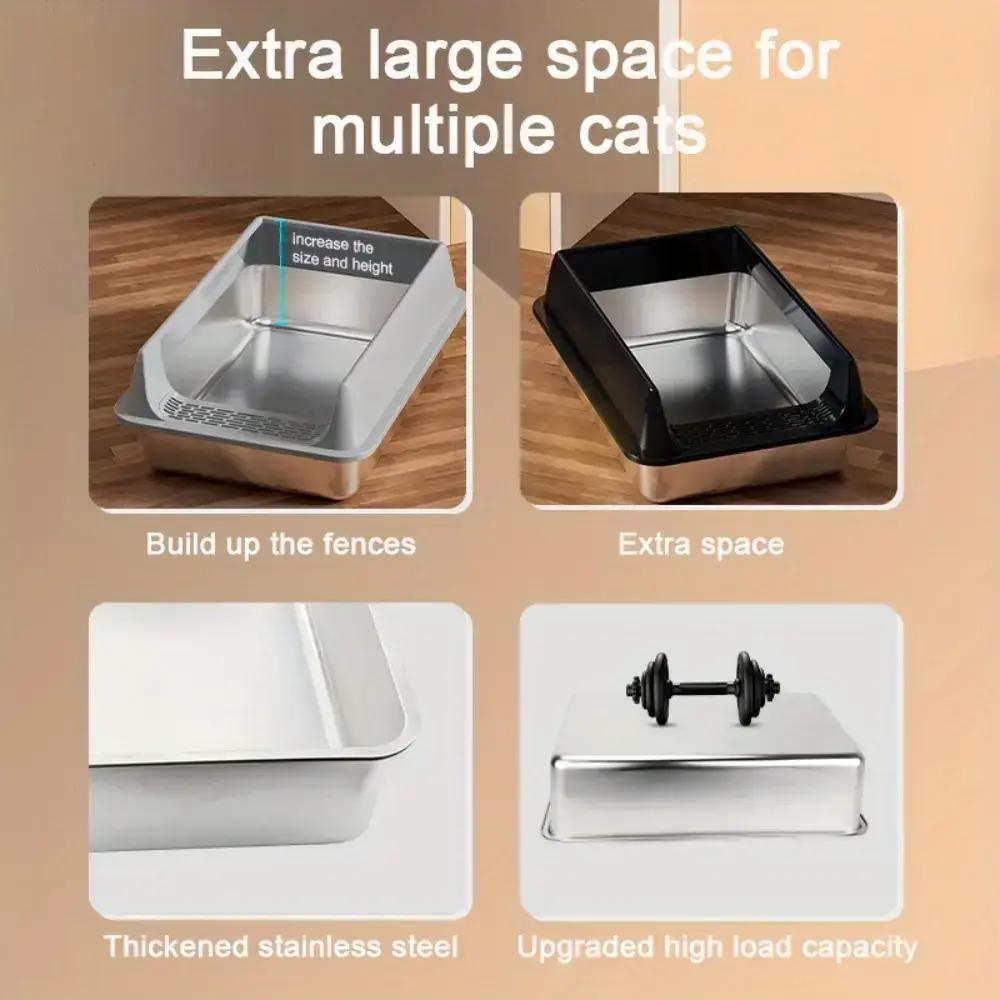 Oversized Stainless Steel Litter Box with Scoop - Leak-Proof, Non-Stick & Easy-to-Clean Tray, Ideal for Large Cats