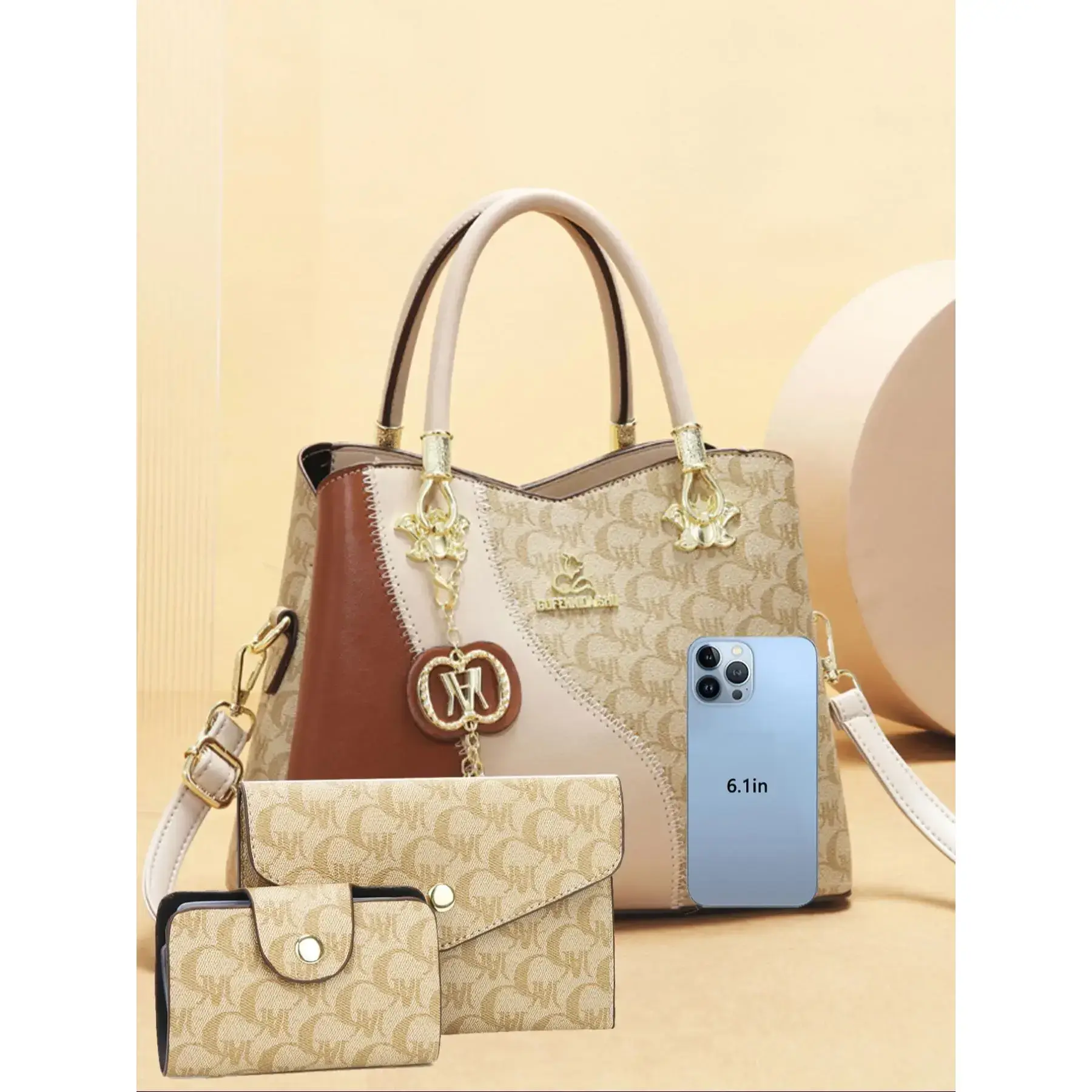 Women's Fashionable All Over Print Crossbody Bag & Wallet & Pouch Set, Casual Versatile Pu Leather Shoulder Bag Set for Women, Trendy High-quality Daily Commuting Bag Set, Wallet Set, Purse Set