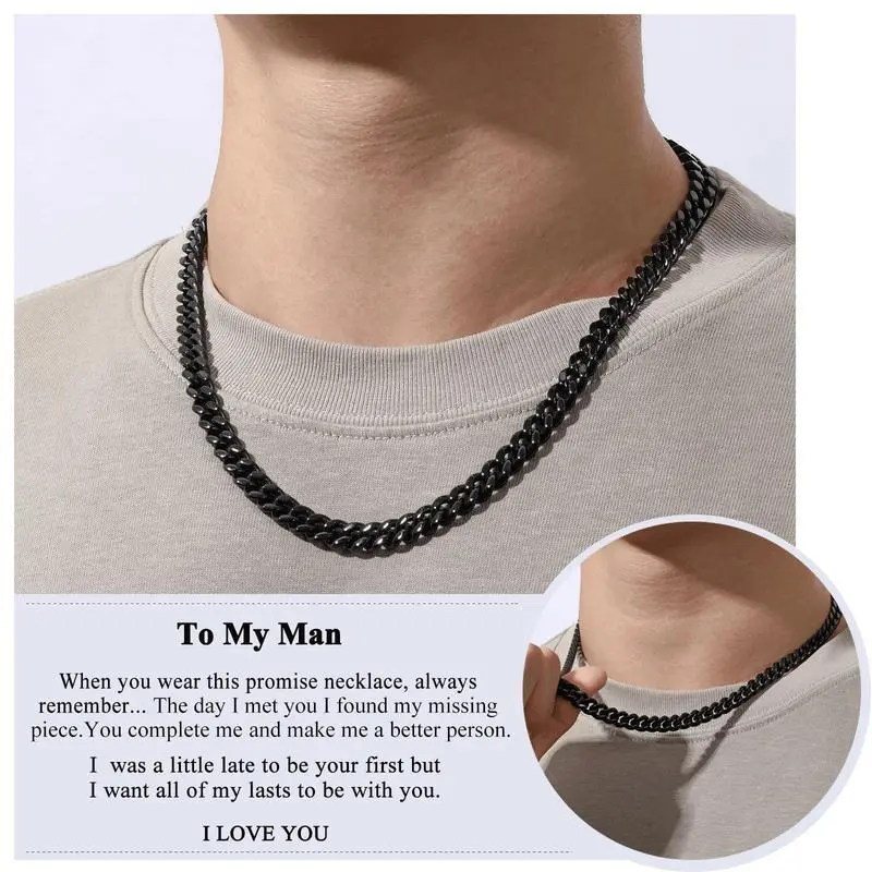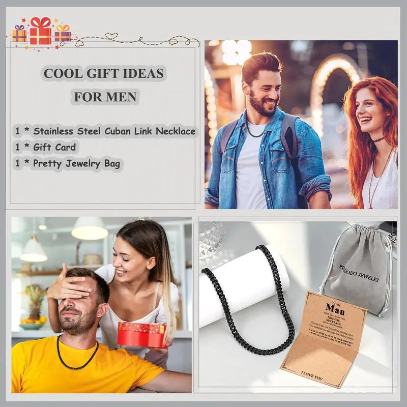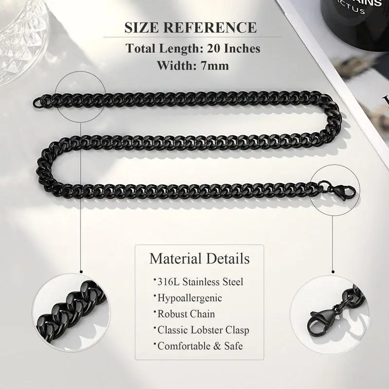 Stainless Steel Mens Cuban Link Chain 20 Inches Promise Necklace for Him Men Boyfriend Husband Son Brother Valentines Day Anniversary Christmas Birthday Gift Ideas