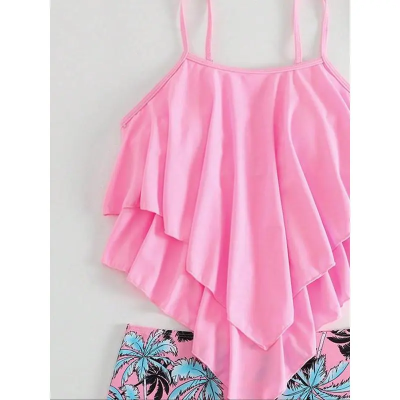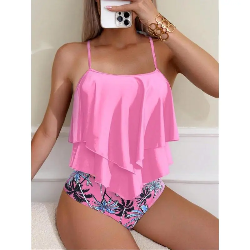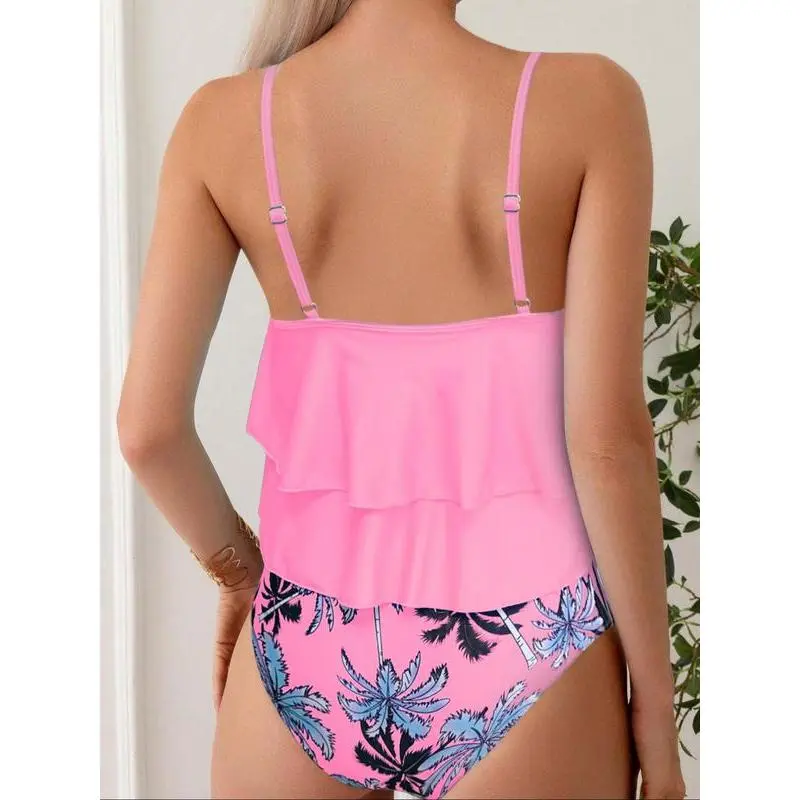 Women's Plants Print Tankini Set, Tankini Top Bottoms, Casual Plain Sleeveless Top & Swim Bottom Two-piece Swimsuit for Beach Holiday Vacation, Ladies Swimwear for All Seasons