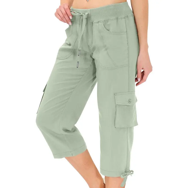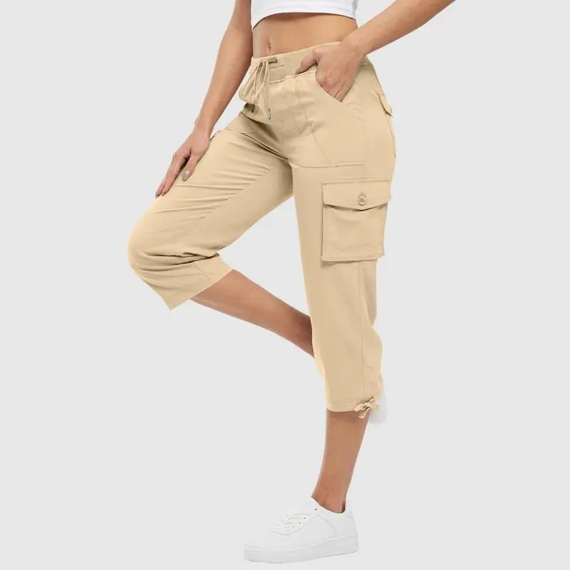 Womens Capris with Pockets Loose Fit Casual Capri Pants Dressy Lightweight Ladies Baggy Cargo Pants for Hiking