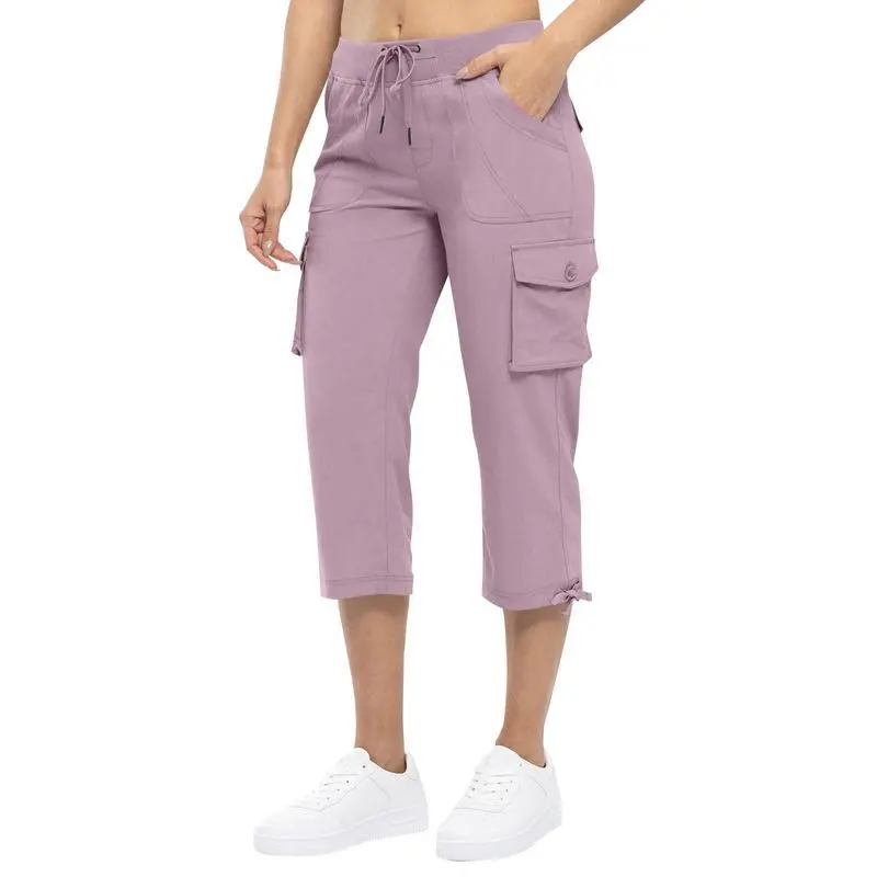 YSENTO Women's Cargo Pants Plus Size Outdoor Lightweight Capris Casual Trip Loose Shorts Summer Style Moms over 30 Comfy wear ootd Bottoms Basic Pink #MOTHER'S DAY