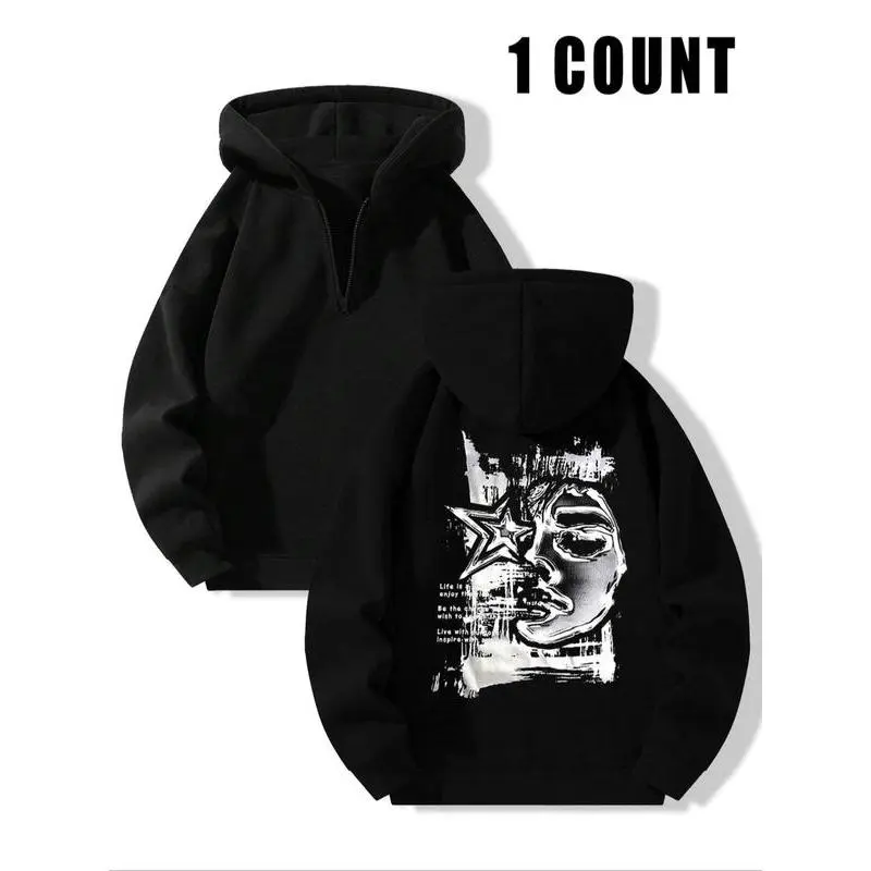 ��Unique Half-Zip��: The half zip feature offers practicality, allowing for easy wear and adjustment of ventilation, perfect for fluctuating spring and fall temperatures. ��Graphic Element��: The eye-catching graphic pattern adds a modern touch, setting it apart from traditional hoodies and ensuring it stands out in your wardrobe. ��Thermal Lining��: Equipped with a thermal lining, this hoodie provides additional warmth for autumn and winter, making it an ideal choice for chilly days. ��Drop Shoulder Cut��: The drop shoulder design offers an effortless fit, enhancing mobility and ensuring the hoodie complements a variety of body types. ��French Terry Fabric��: Made from French Terry, this hoodie combines softness with slight stretch, ensuring a cozy feel while still allowing for easy movement.